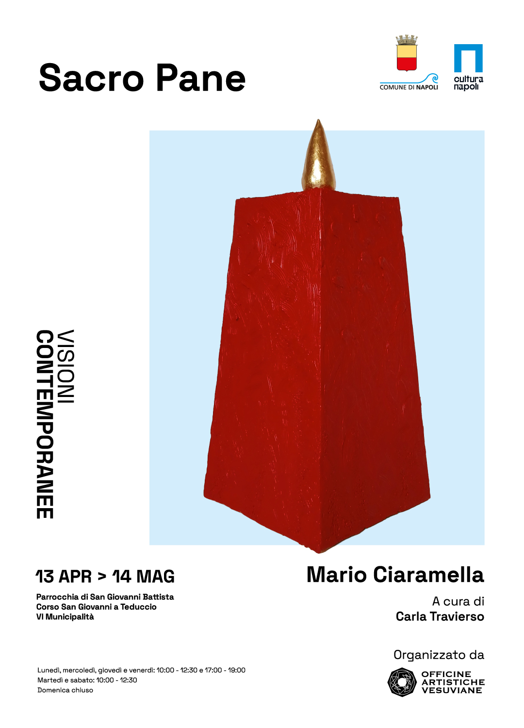 Mario Ciaramella torna a esporre a Napoli con un intervento site specific per la Chiesa di San Giovanni Battista. Dal 13 aprile al 14 maggio, Officine Artistiche Vesuviane presenta “Sacro Pane”, la mostra dell’artista sannita, a cura di Carla Travierso, promossa e finanziata dal Comune di Napoli