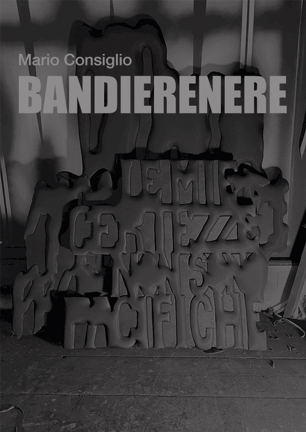 Le BANDIERENERE di Mario Consiglio, spesse, materiche, danno forma alle frasi epidittiche di Davide Banda, a parole fendenti come lame, solo in apparenza addolcite dal labor limae del poeta. Sono slogan anarchici che raccontano le storture del contemporaneo, denunciando, senza inutili ipocrisie, quanto poco siamo disposti ad apprendere dagli errori del passato.