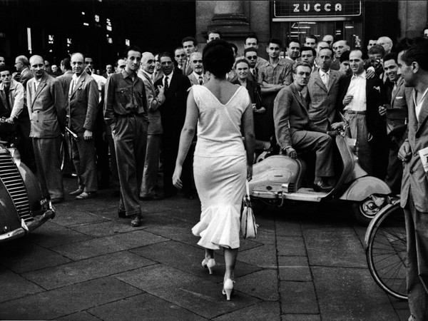 Tra i tantissimi inediti, la Casa dei Tre Oci espone, per la prima volta, l’intera sequenza della fotografia più celebre e probabilmente più amata di De Biasi: Gli Italiani si voltano, realizzata nel 1954 per il settimanale di fotoromanzi Bolero Film e scelta da Germano Celant come immagine guida della sua mostra al Guggenheim Museum di New York, “The Italian Metamorphosis 1943-1968”. Una splendida Moira Orfei vestita di bianco passeggia per il centro di Milano, attirando lo sguardo di un gruppo di uomini.