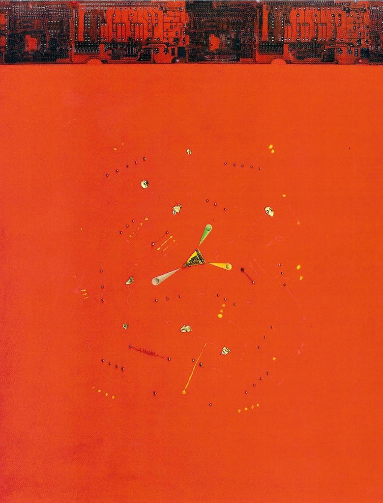 Mario De Leo è nato a Ruvo di Puglia nel 1944. Vive a Monza e lavora a Lissone nello Studio Perlarte. Negli anni ‘70 si è affermato come uno dei più genuini cantautori italiani (invitato più volte al Club Tenco di San Remo). De Leo è partito da un sentimento antropologico - sociale per far crescere lentamente un suo personalissimo percorso di musicista e di pittore. Negli anni '80 ha sempre più approfondito una ricerca pittorica tra espansioni segniche-surreali-cosmiche ed interferenze di materiali tecnologici essenzialmente di recupero. Dopo varie collettive ha allestito la sua prima personale a Milano, nell'87 (galleria OSAON) ed é stato poi invitato ad importanti rassegne nazionali ed internazionali come il Premio Suzzara, "Oggetti del necessario" (Spoleto), "Italian Reporter” (Metropolitan Museum di Tokyo) , "De Hominis Dignitate ", una mostra itinerante sul pensiero filosofico di PICO DELLA MIRANDOLA a New York, Parigi e città di Mirandola. Alcune opere dell’artista sono in esposizione permanente presso alcuni musei nazionali ed int“(...) De Leo esplora la macchina informatica a partire dallo stereotipo visivo delle sue viscere, e la schematizza sino a farne una sorta di motivo decorativo, sul quale far aggettare altre forme di visione anch’essa stereotipa, ma terragna, legata a un sapere antico, radicale del mondo. (...)Cosa potrà accadere a nuovi coboldi della macchina come De Leo non è dato di prevedere. Ciò che fa sperare è il cuore puro, la sana ingenuità e meraviglia, con cui uno come lui smonta mentalmente la macchina e la riduce a proporzioni ripensabili e giocabili.”