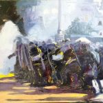 Questa mostra è per Mario Ferrante un ritorno alle origini della sua carriera. Prima tra tutte le gallerie che ne hanno successivamente seguito il lavoro in Italia e all’estero, la galleria Edarcom Europa ne comincia a trattare le opere a metà degli anni ‘90 del secolo scorso, curandone successivamente alcune tra le mostre più significative. Nel titolo Dies irae, carico di una forte valenza drammatica, c’è tutto il mondo pittorico di un artista italiano che affonda le sue radici in un’infanzia vissuta tra le contraddizioni e i ritmi del lontano Brasile. E così, in questo momento storico segnato dallo sconquasso delle relazioni sociali e affettive e dall’emersione di solitudini e egoismi, Mario Ferrante dipinge l’uomo contemporaneo in un incessante ricerca di stabili appigli. Alla materia cardine della sua ricerca pittorica come le notti dei giovani, i vicoli e le anime delle favelas brasiliane, le prove d’orchestra, gli interni dei caffè e gli altri “luoghi del tempo”, Ferrante aggiunge alcuni lavori frutto della recente riflessione globale sui temi dell’ambiente e dei diritti.
