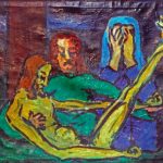 Che “stile” gli si può attribuire? Il suo stile pittorico è personalissimo e sfugge alle definizioni. I toni e la materia, i colori netti e decisi delle sue opere sono di forte impatto emotivo. Tutte le immagini e le figure sono essenzializzate, senza cadere nell’ astrattismo. E questa essenzializzazione dà forza a un segno che racchiude le figurazioni, è un segno–tratto che è pittura, che contorna, dimensiona e caratterizza quasi un secolo di vita vissuta, ma anche la fine di un’epoca, i cosiddetti tempi di “La Malora” di Beppe Fenoglio, di cui quest’anno ricorre il centenario della nascita. Un’epoca unica e irripetibile, con tanti protagonisti, che ha cambiato la composizione sociale di una terra di contadini poveri.