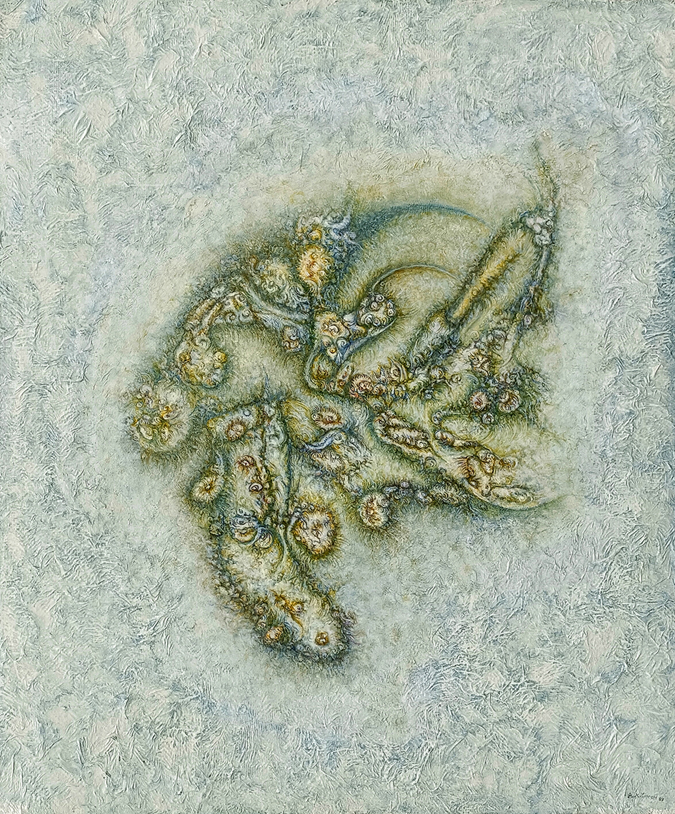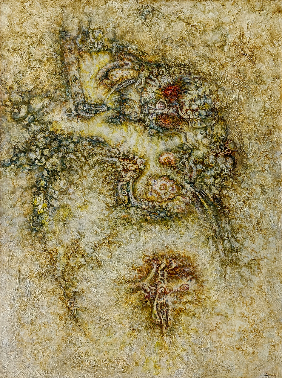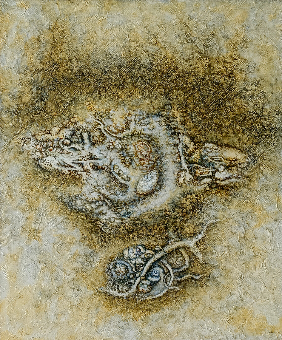 Con il tempo queste opere si staccavano sempre più dalla figurazione di archeologie o in senso lato di fossili, nel tentativo di comporre nelle forme ritrovate ipotesi di macro strutture cellulari osservate a microscopio.