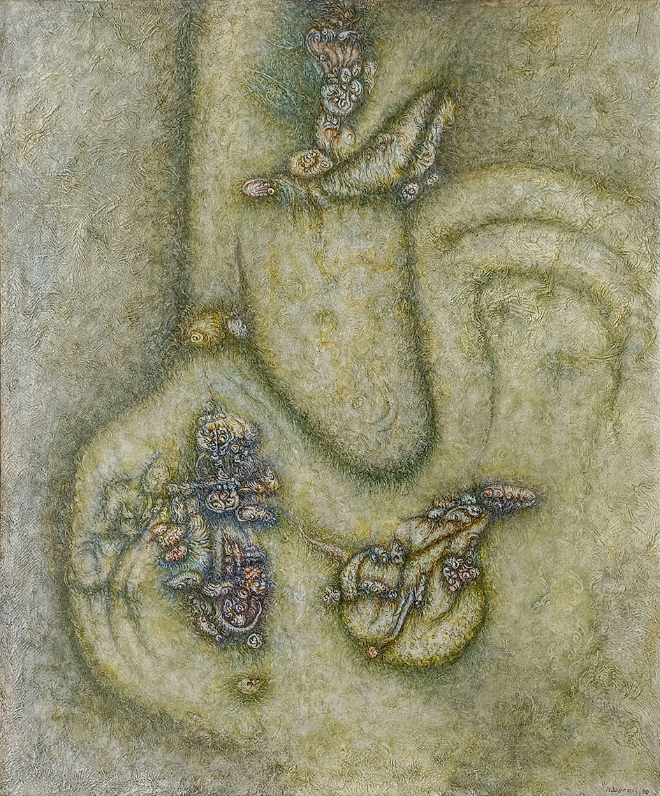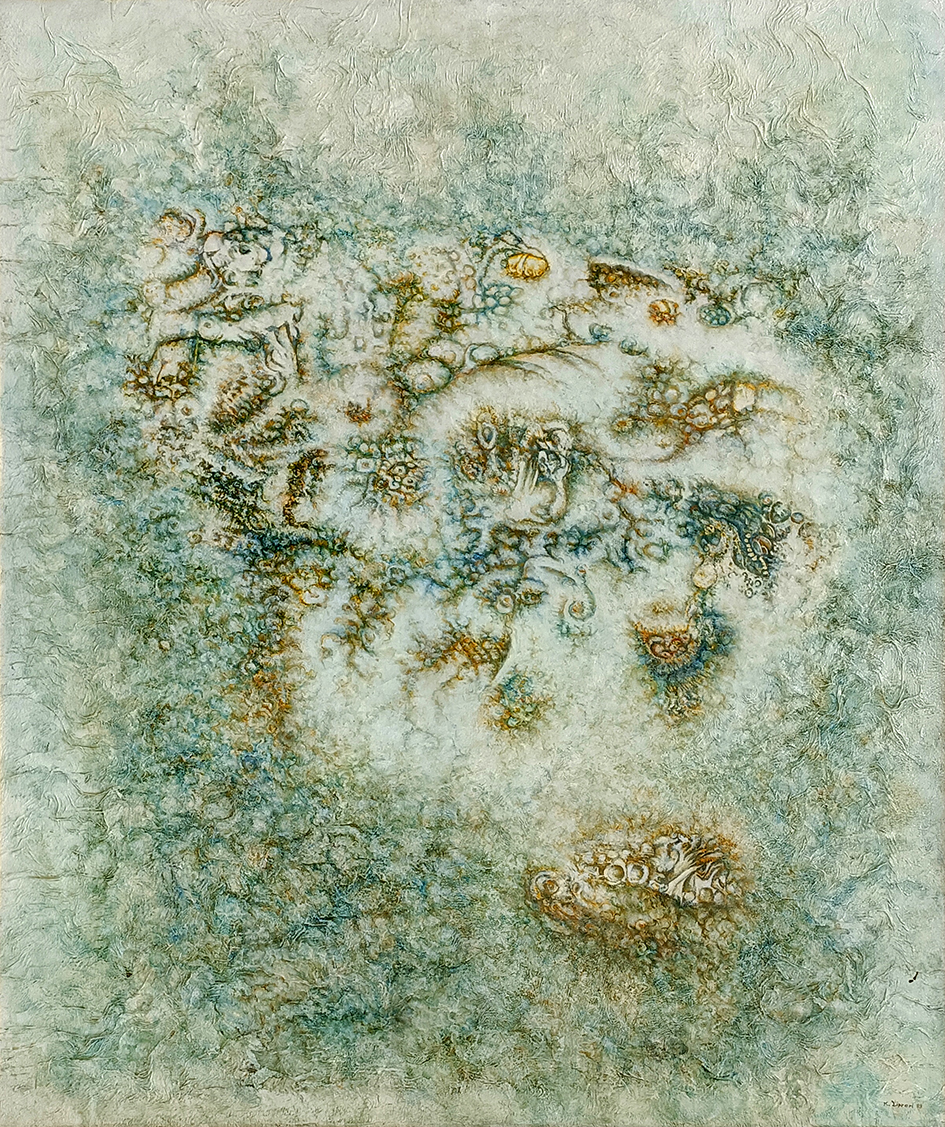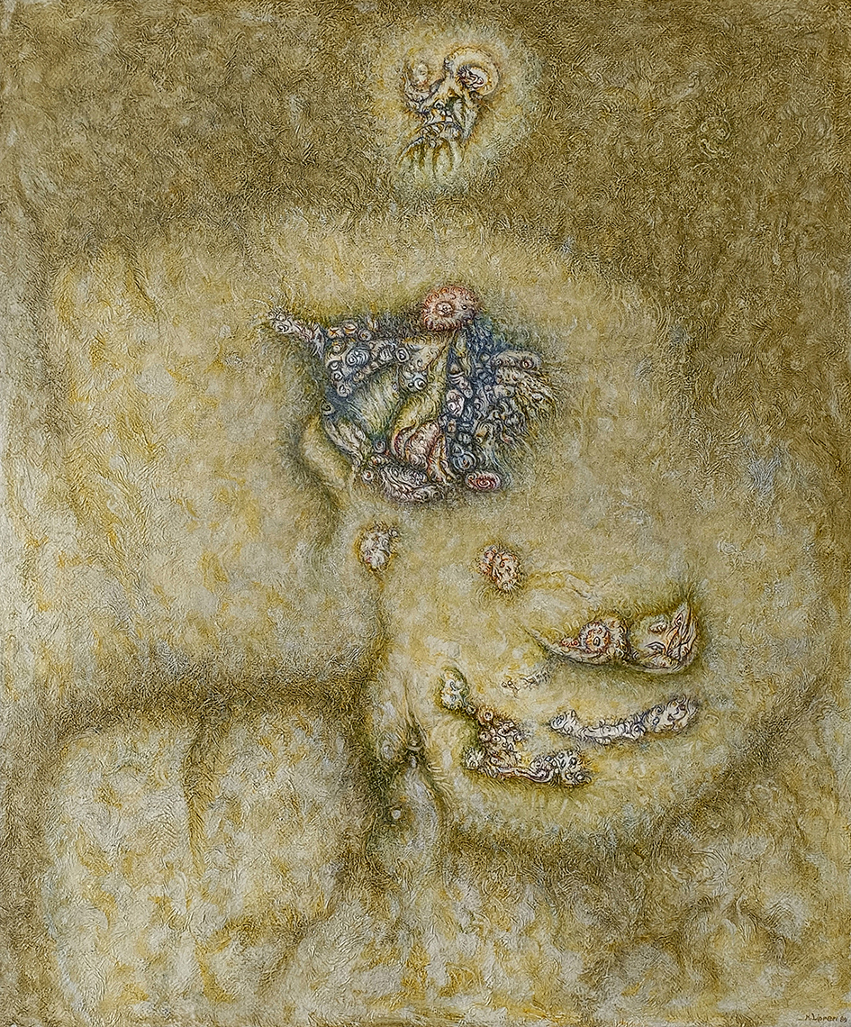 Con il tempo queste opere si staccavano sempre più dalla figurazione di archeologie o in senso lato di fossili, nel tentativo di comporre nelle forme ritrovate ipotesi di macro strutture cellulari osservate a microscopio.