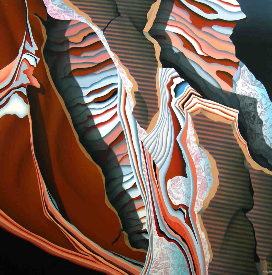 “ Con una accorta puntualità da miniaturista, riprendendo e lavorando per sezioni di immagini le pietre che sono metafore della sostanza dura della terra che abitiamo, Mario Palma raccoglie i legati memoriali della materia e li dispone in sequenza, ne fa movimento di corrispondenze potenziali: le sue opere, l’una dopo l’altra e apparenza dopo apparenza, sembrano disegnarne la storia: una storia di varianti di forme e di colori su di un plafond che manifesta elementi di persistenza. Sono varianti come mirabolanti capitoli di un libro della natura letto e riscritto nel linguaggio “aprente” della pittura; e però nei loro interstizi necessariamente è fatto appello al soggetto, è volto invito all’io, e la materia, restando materia, si dematerializza: i frammenti di una psiche profonda che abita in noi, le immagini archetipe che ci accomunano offrendosi da diorama simbolico, le stanze del rimosso piene di silenzio, i riflessi di un’origine che precede ogni realtà narrabile, la sospensione del tempo che muta in surrealtà un inabissamento ipogeo, le libere associazioni dei sogni rifrangono così e sventagliano, per impulsi di luci e di accensioni cromatiche, i loro fotogrammi. E sulle tele di Mario Palma il linguaggio di una pittura che dialoga con l’informale pullula di segni germinanti”.Scrive Marcello Carlino.