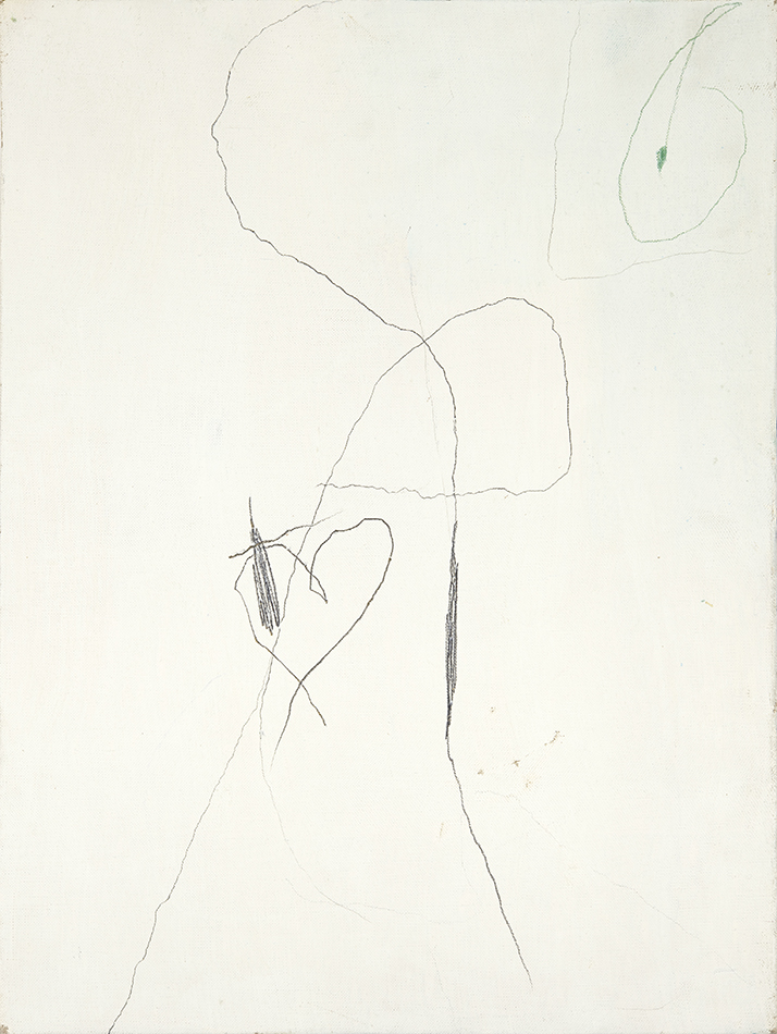 La mostra è composta da una ventina di opere, fogli sparsi, carte, tele, dove anche l’allestimento sottolinea la libertà di fare arte senza troppe restrizioni o enfasi, ascoltando solo la contagiosa ironia dell’artista.