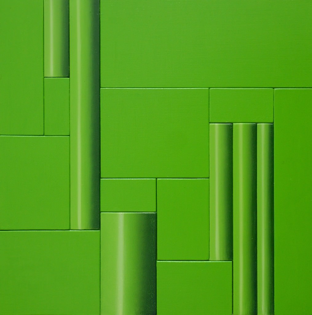 La mostra presenta al pubblico una nuova serie di dipinti in cui niente è come appare: ciascun quadro è determinato dall’accostamento di più tele di differente formato, combinate (e combinabili) tra loro fino a generare un’ordinata griglia geometrica. Allo stesso modo la superficie di ogni modulo, di cui l’occhio è spinto a percepire la curvatura prodotta da una pressione interna che preme per uscire, è il risultato di un puntuale inganno del pennello