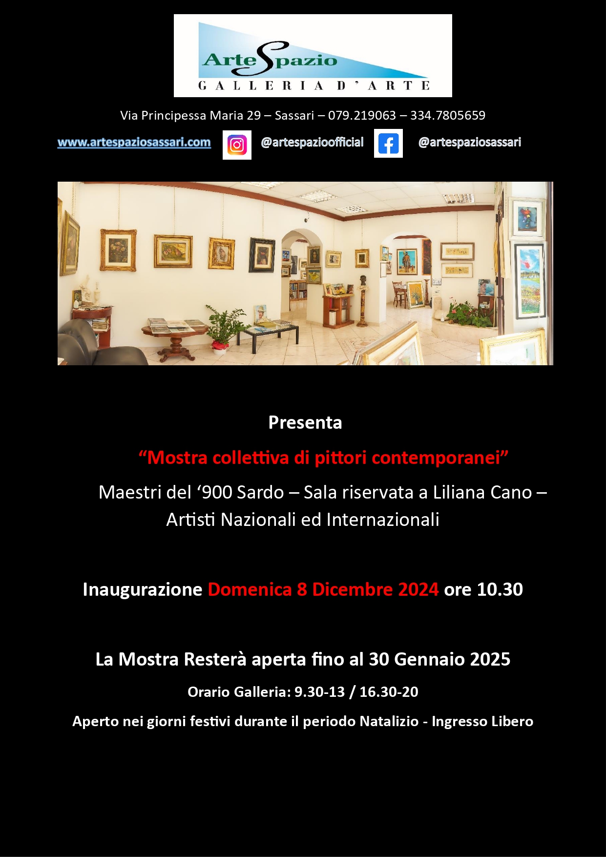 La Storia dell’arte sarda presentata in una prestigiosa esposizione : Opere uniche di Mario Sironi, Aligi Sassu, Biasi, Ballero, Delitala, Mossa, Branca, Melis Marini, Palazzi, Dessy, Corriga, Tanda, Meledina, Atza. Una Sala intera riservata a Liliana Cano. Autori storici e contemporanei.