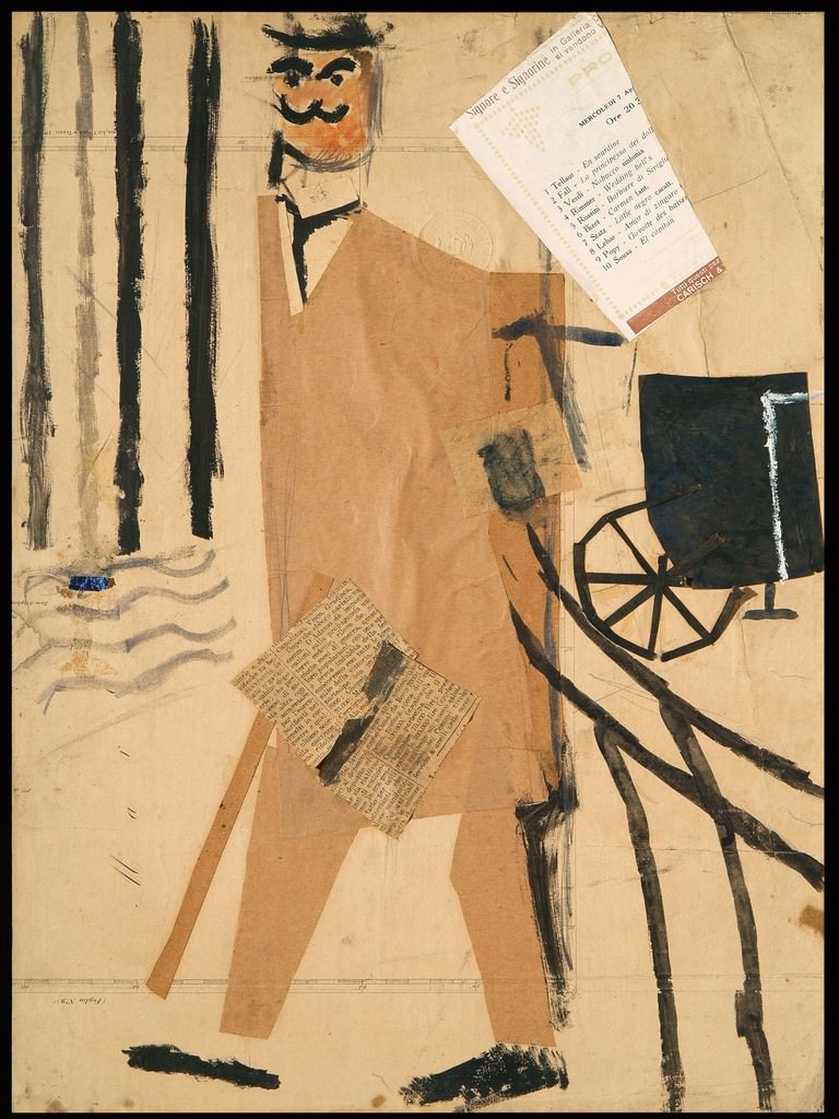 L’esposizione apre cronologicamente con un capolavoro del momento futurista, rappresentato dal noto collage risalente al 1914 dal titolo Il borghese, per procedere con inchiostri e matite che segnano il trapasso dalla poetica futurista verso la temporanea congiuntura metafisica, del quale è esempio emblematico Nudo sdraiato in un interno (1920 circa), ancora vincolato alla figurazione ibridata tra manichino e fisicità e l’inchiostro Paesaggio urbano (1921-1922 circa), ormai sulla via del congedo dal transito metafisico verso la stilizzazione elementare delle periferie milanesi, composte da casamenti, gru, ciminiere, insediamenti industriali. E ancora paesaggi urbani e nudi femminili di una inconfondibile classicità moderna, accesa in espressionismi gestuali negli inchiostri quasi a ridosso degli anni Trenta, dai quali si passa alle opere degli anni Quaranta: livide, titaniche e cupe Montagne e Composizioni scandite per “cellule” tematiche e per ritmi architettonici tipici della pittura murale, espressione artistica che ebbe in Sironi un maestro per eccellenza nella realtà italiana del secolo XX.