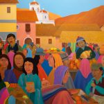 In effetti basta un solo colpo d’occhio per avvertire il calore emanato dalle sue tele, piccole o grandi, ma tutte permeate da un respiro vitale che contagia lo spettatore e lo trasporta nella geografia, nella storia, nella cultura e nella magia delle popolazioni di origine andina.