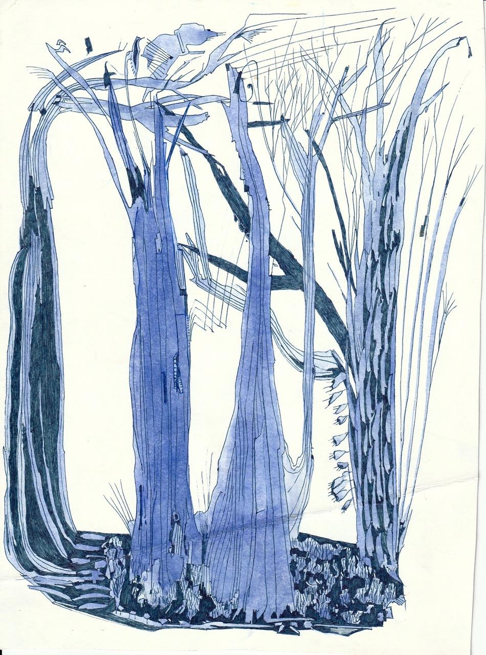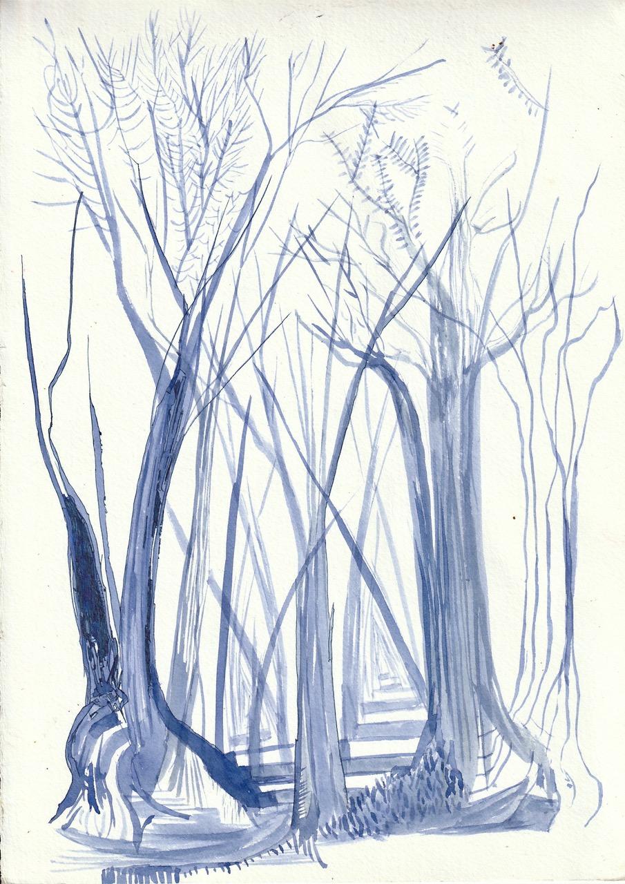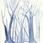 In mostra anche una serie di disegni monocromi con alberi che, sospinti da linee fitte e sottili intessute come ragnatele, paiono germogliare e tendere oltre il limite del foglio bianco cercando spazio e aria. Come noi, che li abbiamo perduti e di cui serbiamo, preziosa, la memoria.