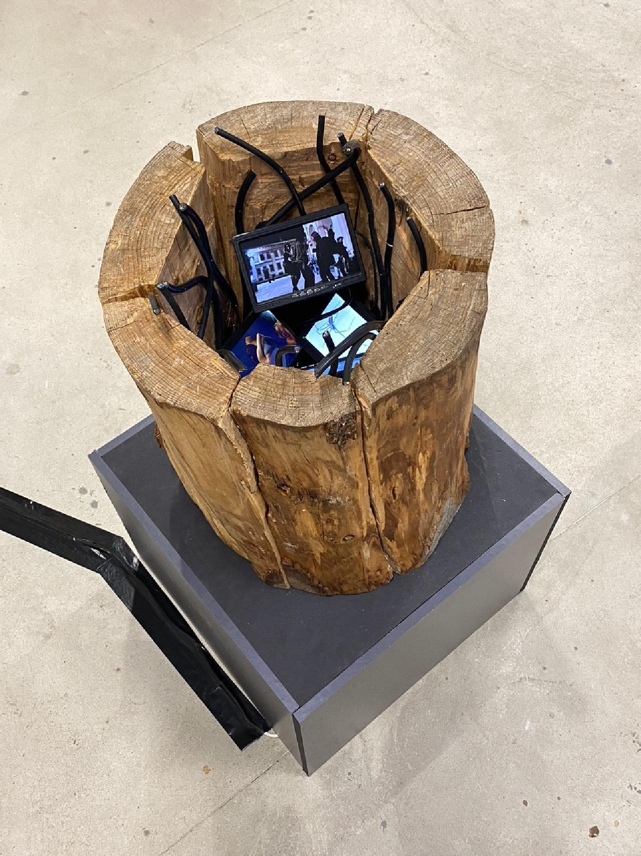 La memoria è un altro tema sul quale Uliassi riflette, attraverso un dialogo con Carolina Attalla, giovane video maker che si muove nell’area della New Media Art. Con lei realizza l’installazione Urna mnemonica, pensata e realizzata sulla dicotomia tra natura e tecnologia. Giustapponendo i materiali che li rappresentano in una struttura inaspettata e curiosa, i due mondi si connettono esteticamente con un risultato di grande suggestione che evidenzia l'ossimoro della contemporaneità: in un tronco svuotato sono stati collocati degli schermi; alla memoria dell’albero (gli anelli che ne segnano il tempo) è stata sostituita la nostra (quella dell’hard disk) caduca ed effimera, attraverso un’operazione brutale e invasiva, tipica dell’intervento antropico. Il risultato è quello di un luogo di memoria anacronistico, evocatore di temi come alienazione urbana e deturpazione naturalistica.