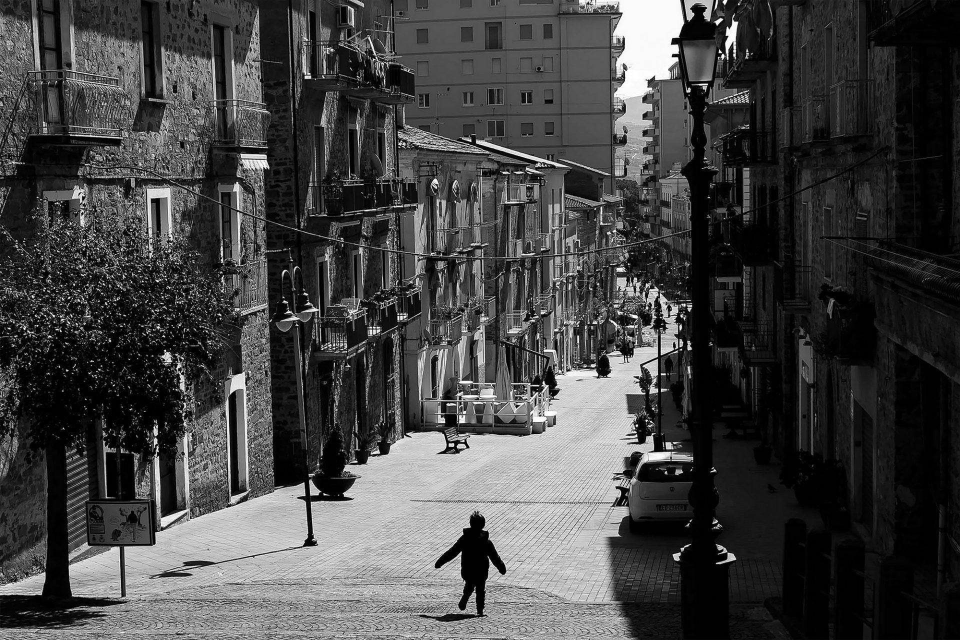 È ridondante ora fornire dati precisi, ma la crisi climatica e la fame ad essa correlata, la guerra e le storture dei sistemi dittatoriali ancora presenti nel mondo gravano sui più piccoli e i giovani. Nel nostro mondo si fatica a contare la spoliazione dei bambini ridotti a oggetto della perversione degli adulti, dello sfruttamento sul lavoro ma anche della regressione sociale complessiva che fatica a rispettare il pensiero e le emozioni dei più piccoli, i loro bisogni e necessità. Insomma, la famosa fiaba raccolta dai fratelli Grimm nel XIX sec. è ancora attuale. Ancora Pollicino è abbandonato nel bosco, ancora incontra ‘la strega/ l’orco’, e ancora cerca di tornare a un approdo sicuro con le sue forze e seguendo delle tracce lasciate sulla via. In fondo noi vogliamo essere uno di quei sassolini illuminati dalla luna, una delle tracce che conduce Pollicino in un porto sicuro. Il progetto artistico è in collaborazione con il Comune di Olgiate Olona (Va), sede delle riprese del video realizzato da Antonio Rubino con l’étoile Oriella Dorella. Il contenuto multimediale, parte integrante dell’esposizione, rappresenta una coreografia suddivisa in tre atti, diretta da Francesco Posa, all’interno dei quali si sviluppa il racconto di Pollicino. Adottando una profonda sinergia tra fotografia, danza e musica, il progetto “Pollicino sognatore” nasce da una suggestione, che Voria ha ricevuto ri-leggendo la poesia di Rimbaud “La mia Boheme”, che lo ha trasportato alla sua infanzia e ai momenti vissuti sulle spiagge di San Francesco, ad Agropoli. In particolare concentrandosi sui seguenti versi: “Me ne andavo, i pugni nelle tasche sfondate; / E anche il mio cappotto diventa ideale; / Andavo sotto il cielo, Musa! Ed ero il tuo fedele, / Oh! Quanti amori splendidi ho sognato! / I miei unici pantaloni avevano un largo squarcio. / Pollicino sognante…”.