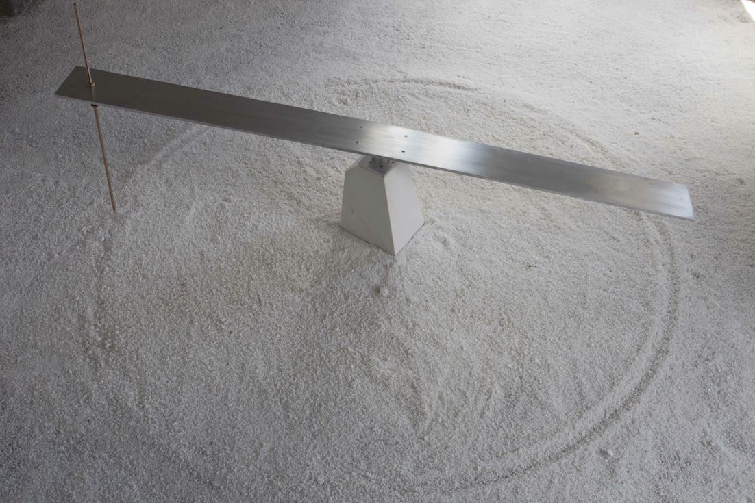 Nelle tre sale di Palazzo Poli si presentano due grandi installazioni: la prima, dal titolo Mare chiuso, evocazione del “nostro” Mediterraneo oggi teatro di fughe e disperazione, è una macchina disegnante programmata per tracciare segni su di una distesa di sale marino. La seconda installazione, Cosa ferma le altalene?, è composta da cinque altalene di cristallo che, tracciando grazie a dei magneti delle linee casuali di polvere di ferro, alludono al flusso nomade di popoli non sempre mossi da una libera scelta. Nella terza sala, insieme ad alcuni disegni dell'artista, viene presentato Diariogramma India dove l’esperienza di viaggio diviene punto di incontro tra il movimento della matita sulla carta e i sussulti incontrollati che i mezzi di locomozione producono sul corpo dell’artista.