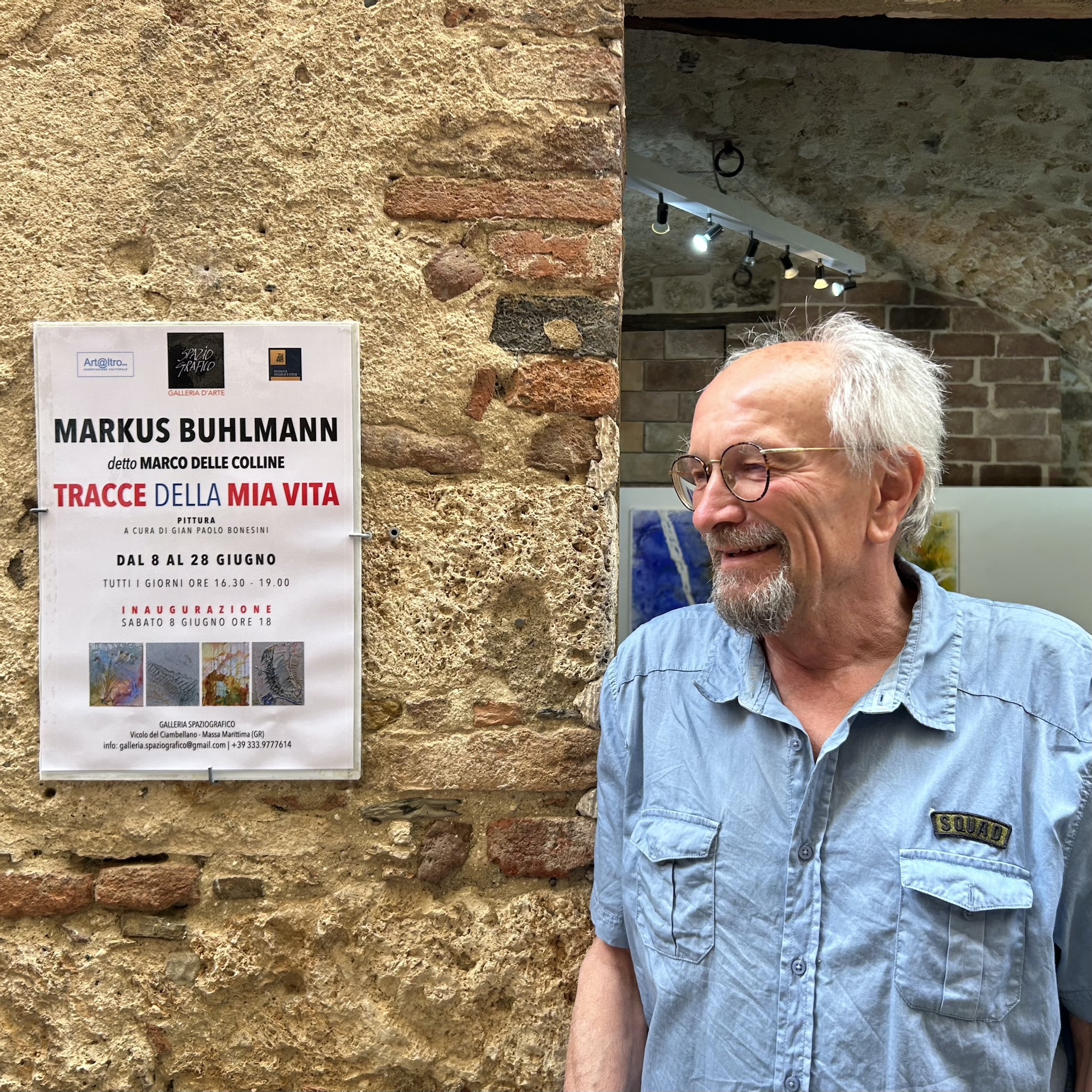 Lasciate le colline dolci di un paesino al centro della Svizzera, è arrivato quarantacinque anni fa alle dolci colline della Maremma e in questa mostra autobiografica ripercorre i momenti che hanno segnato la sua esistenza, rintracciabile nelle intense opere che caratterizzano ogni periodo.