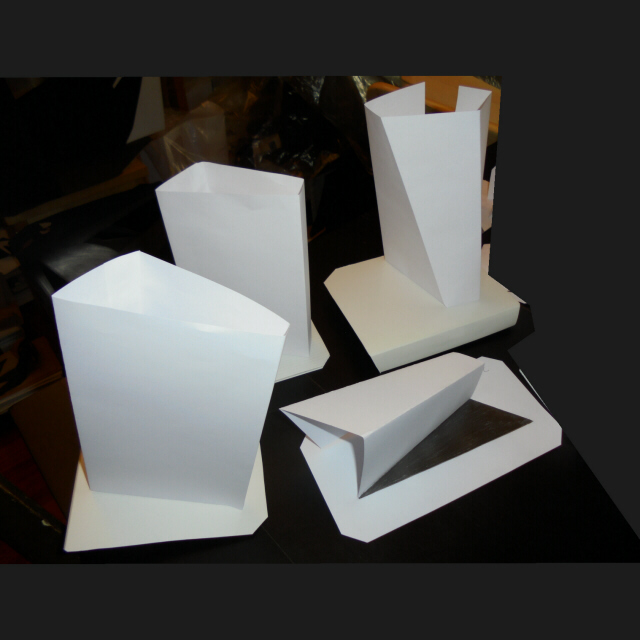 Il disegno a grafite è il primo stadio compositivo, in cui figure, scorci di luoghi e mani abnormi si intrecciano in situazioni oniriche con passaggi tonali morbidi e sfumati, che creano una atmosfera placentare (o intrauterina). Qui lo slittamento su piani e quadrature diverse è affidato alla stratificazione di due, talvolta tre carte diverse, con una predilezione per le superfici ruvide e porose, alternando qualità diverse (dalle carte artigianali alle tovagliette da bar). In alcuni di questi disegni iniziano a profilarsi sagome e silhouette intagliate contrastanti che accentuano l'effetto di bidimensionalità Una seconda formula è quella dei cartoncini neri intagliati che restano a uno stadio di basso-altorilievo su un foglio di fondo, perlopiù l'ocra scuro delle carte da imballaggio La terza tipologia è l'oggetto plastico in cui il foglio nero, oltre a essere intagliato, viene piegato in modo da ricavare un piede di sostegno e un angolo verticale che permette di connetterlo ad un altro o più fogli, creando concatenazioni e parziali sovrapposizioni. Nelle composizioni più complesse il piede che poggia sul piano diventa un fulcro da cui si dipartono altri piani, altri fogli intagliati. Le giunture sono sempre piuttosto informali e le piegature seguono angolature raramente ortogonali, così come l'idea di verticalità in queste forme, dovendo barcamenarsi con la ricerca di un baricentro di fortuna, è quasi sempre affidata ad andamenti obliqui. Ma è proprio questo a determinare il grande dinamismo di queste composizioni. Anche quando inserisce piccole sculture in scatole di recupero, in quelli che lei stessa definisce “teatrini”, non fa che esaltare la spinta energetica multiplanare verso l'esterno. Che si tratti di futurismo? Tutti questi fattori formali convergono a un'ansia di raccontare, a un'appassionata (bruciante) tensione visionaria e letteraria, che dissimula con grazia estrema l'informalità, la povertà materica e la semplificazione arbitraria delle figure, facendone punti di forza. È la grazia di cui godono i bambini, e gli artisti, quando affermano contro tutto il loro privilegio a reiterare il gioco di specchiarsi dentro se stessi, come il cane che si morde la coda, che diventa città e mangia tutto, o la madre figlia che divora se stessa e poi si partorisce.