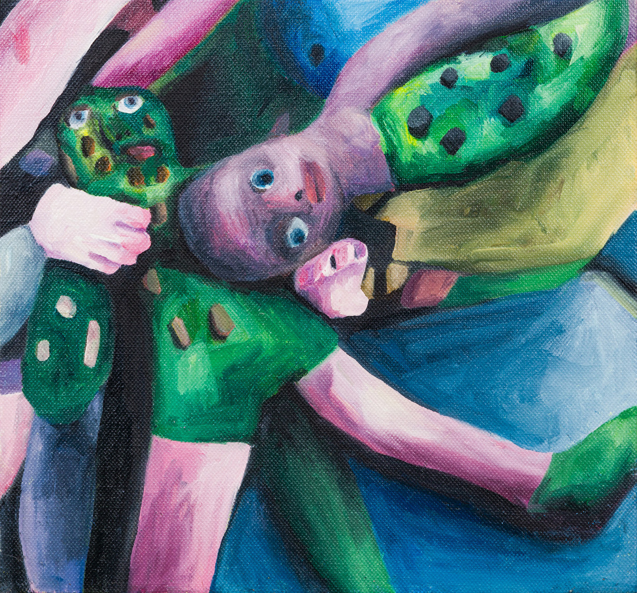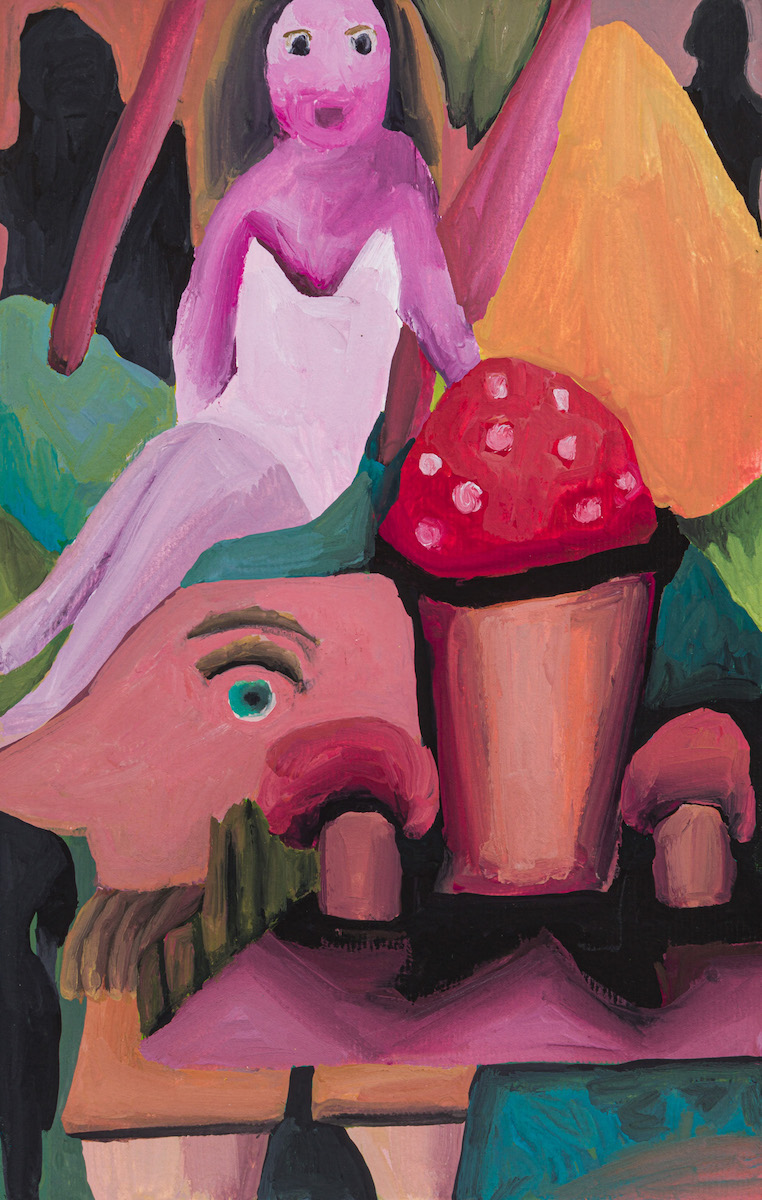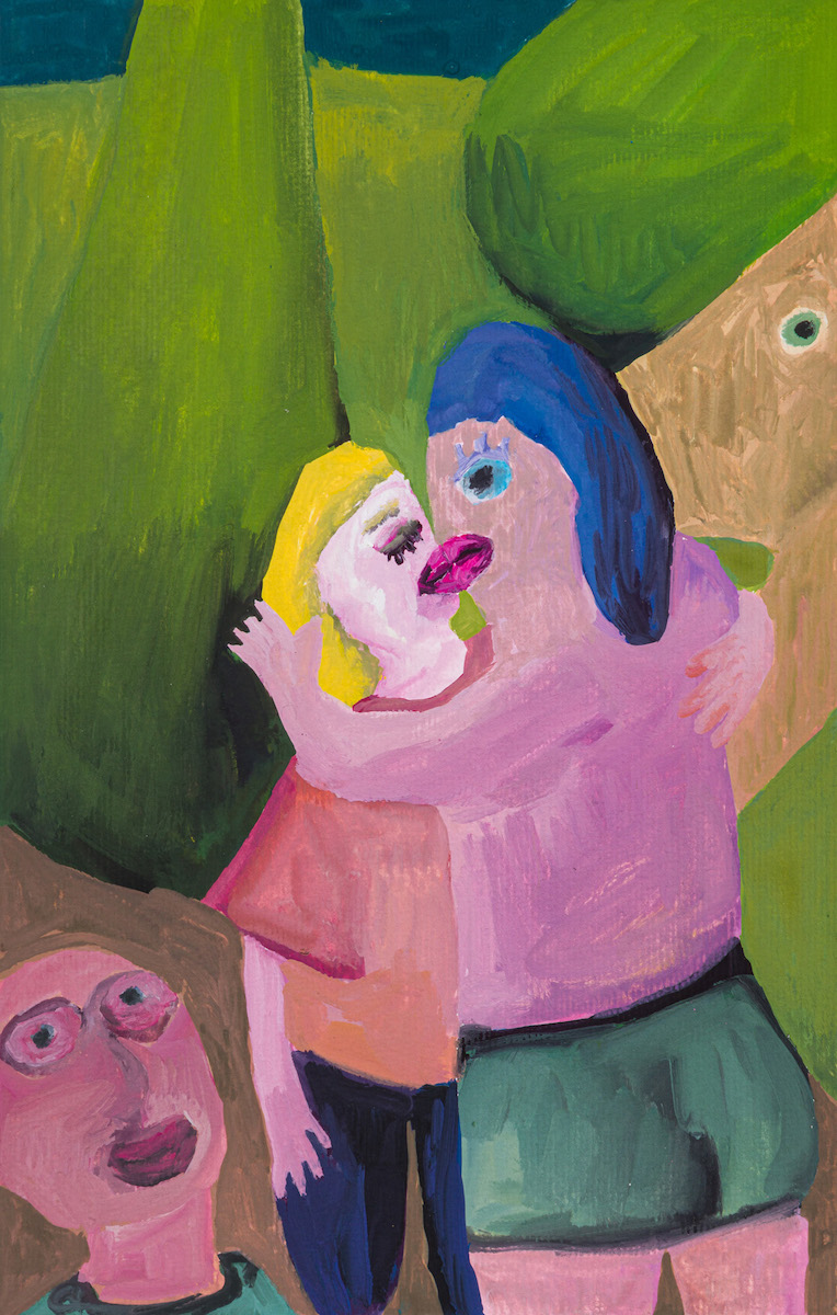 La Galleria Giovanni Bonelli è lieta di presentare nella sua sede di Pietrasanta, la mostra personale di Marta Sesana “Bosco Trance”, curata da Rebecca Delmenico. Una decina di opere su tela e su carta di formati medio-grandi e piccoli ci introducono ad un viaggio in una dimensione onirica dai toni vibranti dove lo spettatore viene invitato a partecipare ad un rave immerso nella natura. Come sottolineato dalla curatrice nel suo testo che accompagna la mostra il rave è “Allegoria di un territorio dove potersi esprimere liberamente” e celebra, attraverso musica techno e balli sfrenati, la riappropriazione da parte degli uomini di uno spazio comune dove poter vivere senza restrizioni. Nella versione psichedelica e trascendentale messa in scena da Marta Sesana, il rave si svolge in un bosco “che rimanda all’incanto, al mistero” e vede partecipare sia uomini che animali, uniti nella celebrazione della libertà e della natura. Nella danza i corpi si fondono con l’ambiente circostante, i volti mutano in sagome che evocano un multiforme caleidoscopio. La musica prende forma in campiture cromatiche dalla texture liquida che circondano e invitano tutti i partecipanti all’azione e anche gli animali, come spiriti della natura, entrano a far parte della narrazione. Le opere di Sesana, con la loro prospettiva ravvicinata e distopica, evocano in maniera potente il significato sotteso del rave che viene visto “simile ad un antico rito shamanico, dove i giovani devono superare varie prove - tra le quali il passaggio attraverso la foresta - per tornare al villaggio (ormai) adulti”.
