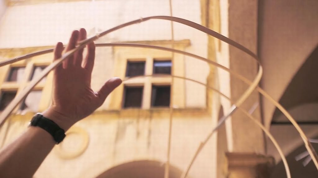 Amaducci presenta A secret place, “un luogo di immagini abitato da immagini”, un progetto appena concluso alla galleria Paolo Tonin di Torino che trova la sua perfetta ambientazione nelle sale dei sotterranei di palazzo Solaini. A partire dal pozzo del chiostro si erge l’installazione di Menicagli, un’architettura astratta, un corpo realizzato da semplici listelli di legno a misura dell’artista, flessibile nella sua apparente fragilità materica. Tra il sacro e il profano, l’intervento di Cionci, dal titolo La Madonna di Volterra, si sviluppa a partire da una riflessione sulle pale d’altare e sulle madonne in esse rappresentate, attingendo dall’iconografia storica volterrana. Una trama di linee dorate, geometrie spaziali, vanno a collegare le vertebre, gli angoli e gli elementi architettonici portanti dell’altana nell’opera di Mùller. Comunicante con tale spazio, le sale usualmente dedicate alla documentazione del motore a scoppio accolgono Inventario di Manca, una raccolta di immagini e parole, parte di una riflessione sulla memoria presente del corpo, dal personale all’universale, composto da 30 taccuini aperti in diretto dialogo con i 30 taccuini chiusi presentati nel vecchio forno a Montegemoli.