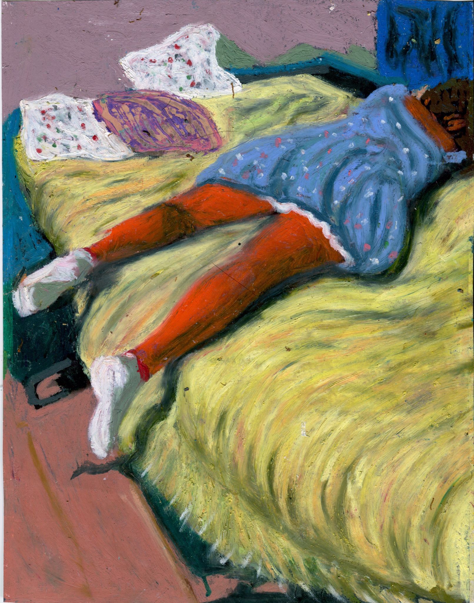 Martina Bruni disegna stanze di case altrui e sceglie di disseminarle negli ambienti di Casa Vuota. “Con i suoi pastelli densi e stratificati – scrivono i curatori – Bruni ficcanasa dentro le case nelle quali si è trovata a soggiornare, nelle quali ha vissuto, nelle quali è passata, dormendo una notte soltanto, nelle quali ha osservato ordini e disordini peculiari e privatissimi, ricapitolandone gli oggetti, i volumi, i vezzi, le emozioni, in una scenografia del nomadismo fatta per esibizioni con il fiato corto”.