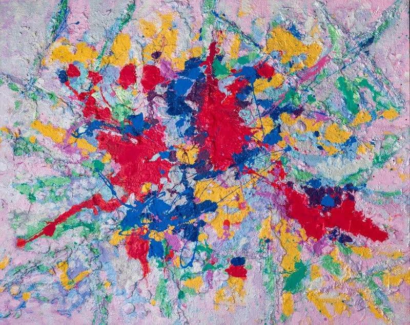 Colori che diventano sensazioni, giochi materici di intrusioni sulla tela, emozioni cromatiche sgargianti che sprigionano forza, felicità del colore
