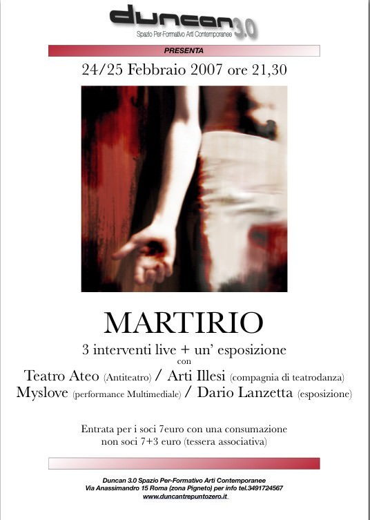 Teatro Ateo presenta Flavio Sciolè in “sANTI NO iconoclasta1970 Atto II” (sabato) “KROCIFISSIONE N°1970″(domenica) + Arti Illesi compagnia di teatrodanza presentano in anteprima “Caronte – studio di un viaggio Beato/primo approccio” + Myslove presenta “Martire Mediatico” performance multimediale + Esposizione di opere di Dario Lanzetta