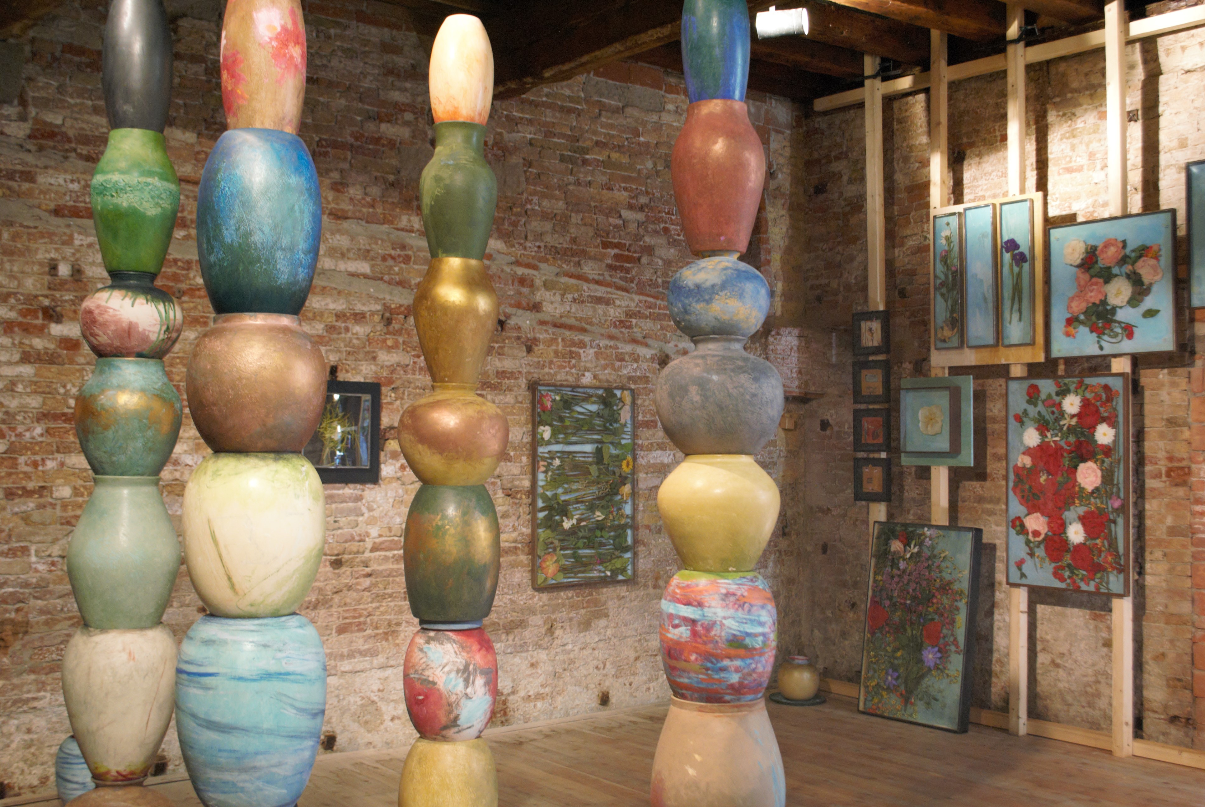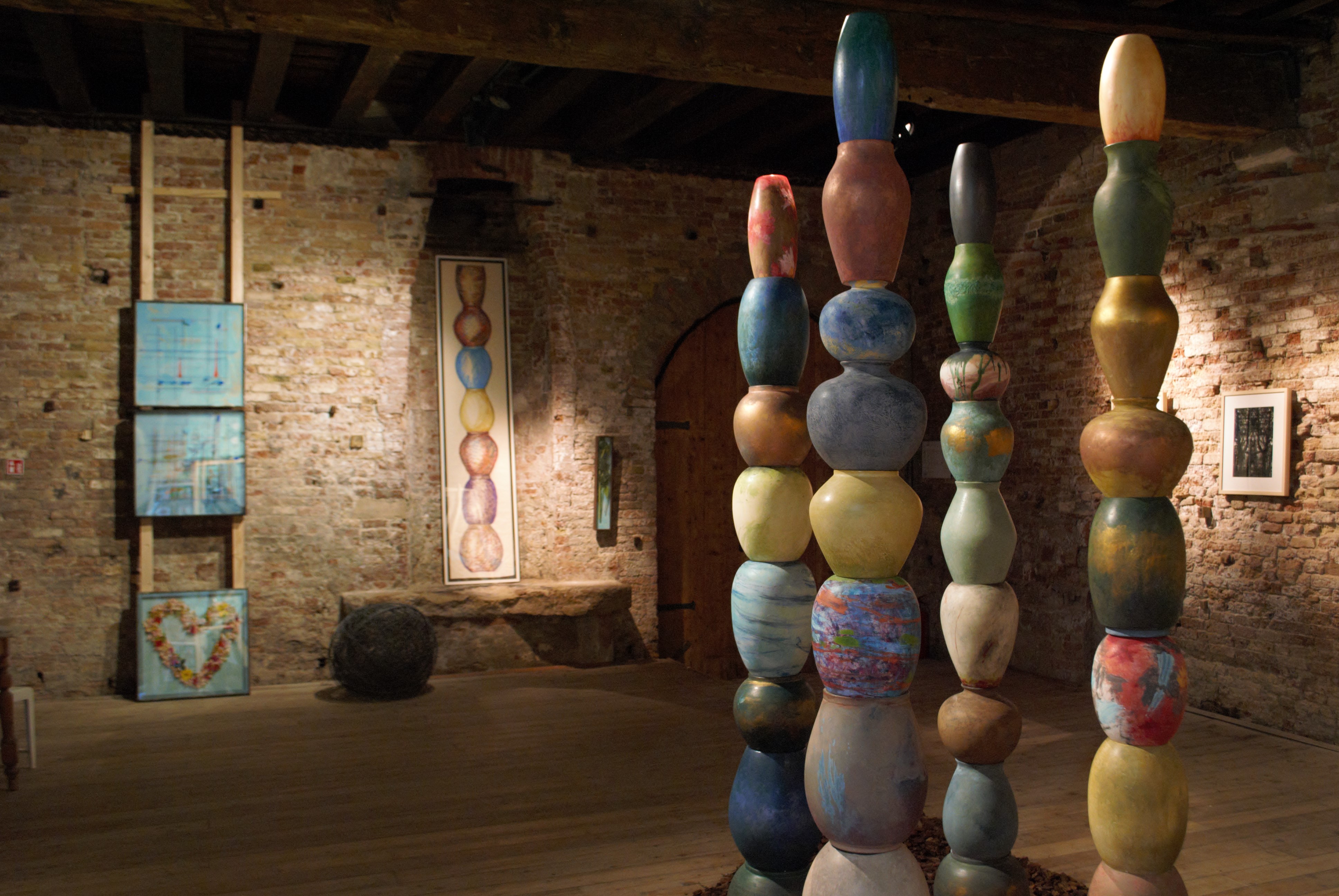 La mostra Nuovi totem e altri innesti ripercorre, in forma di installazione site specific, le tappe salienti della ricerca di Maruzza, artista veneziana, ispirata al bisogno di ricomporre l’unità di una Natura intesa come metafora dello spazio esistenziale, indissolubile tra esterno e interno, una sorta di nastro di Möbius.