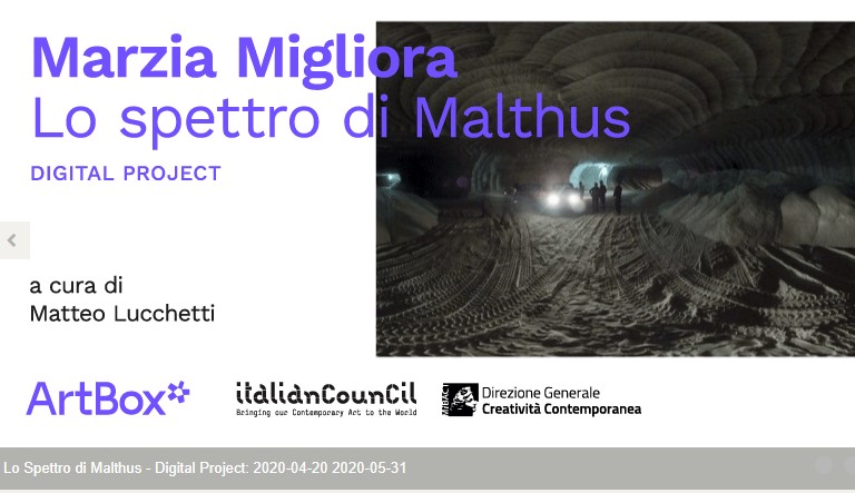 I canali social del Museo MA*GA di Gallarate (VA) ospitano, fino al 1 maggio 2020, il digital project di Marzia Migliora, dal titolo Lo spettro di Malthus. Per l’occasione Marzia Migliora ha realizzato un progetto digitale, a cura di Matteo Lucchetti, in cui proporre in anteprima alcuni frammenti e dettagli, come fotografie, disegni e appunti, dell’installazione Lo spettro di Malthus, che verrà presentata al MA*GA il prossimo autunno. L’evento è fruibile su Facebook: @maga.museo , Instagram: @museomaga e Twitter: @MuseoMaga