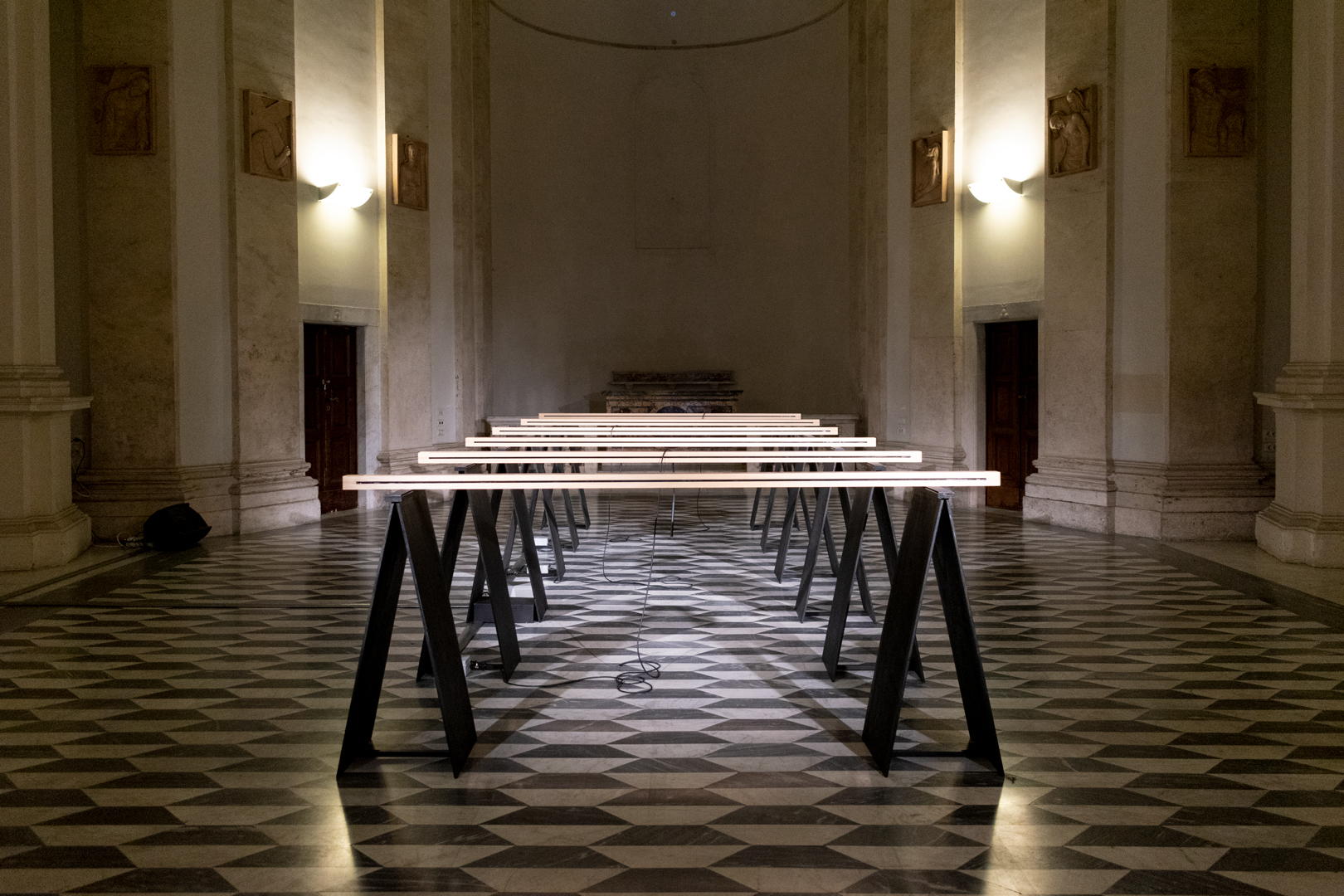 Per la curatrice Ilaria Peretti “quest’opera, come il resto delle ricerche e dei lavori dell’artista, esplora le proprietà spaziali, emotive e psicologiche del suono, e come esso può essere usato come dispositivo per toccare la coscienza individuale. L’acustica della Sala Santa Rita, dove tipicamente il suono degli organi, dei canti, delle preghiere, dei salmi riecheggia distorto e ripetuto nel tempo, è un elemento fondamentale per l’installazione, che sfrutta questa caratteristica per alterare temporaneamente la percezione che gli ascoltatori hanno di se stessi in un determinato momento e luogo, e di ciò che ascoltano. Questo luogo attiva il significato dell’opera, le sue questioni culturali, storiche e sociali, plasma e trasforma l’ascolto, comunica attraverso l'organizzazione fisica e performativa della struttura architettonica una particolare sensibilità estetica.”