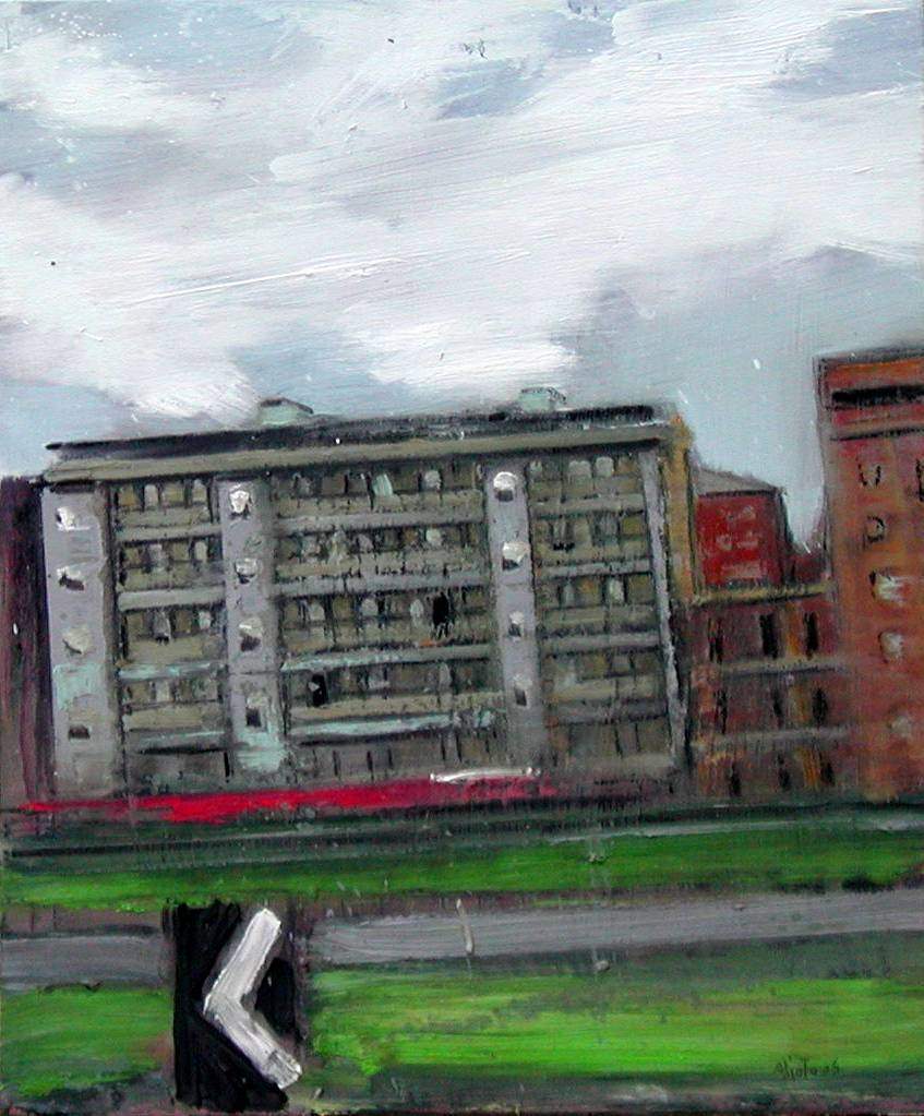 Ed è proprio sulla città di Milano che Massimiliano Alioto dedica i suoi ultimi lavori esposti presso l’Associazione Contemporaneamente. Grandi olii nei quali Milano si presenta come una città vuota, senza gente, senza macchine, quasi come immagini di un sogno, di un ricordo. L’artista fa uso di inquadrature fotografiche, nelle quali l’architettura dei palazzi e delle strade diventano protagoniste, lasciando che quello che le circonda abbia quasi un’aura onirica e incerta.
