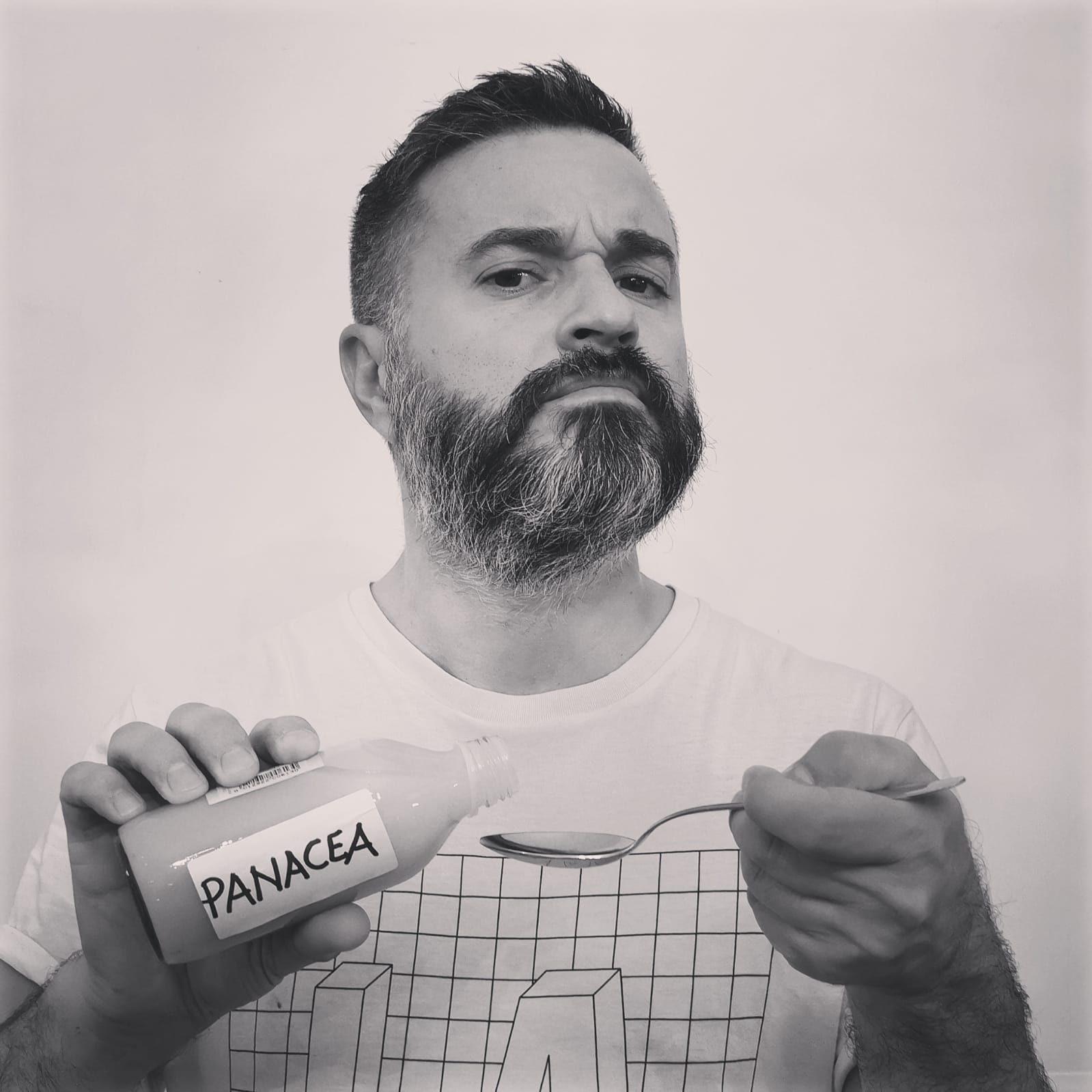 Ferragina con la sua pittura fatta di colori primari dirompenti, di squarci cromatici su fondi neri, di simboli celati ma presenti, indaga da sempre l'animo umano. È proprio questa ricerca interiore che secondo l’artista, “ci distingue da ogni altra specie ma ci mette al muro, in un groviglio di emozioni che ci fanno tremare". Come curarsi dunque da questi tormenti interiori? Attraverso l’arte vista come “Panacea”: un concetto che fa da fil rouge alle opere qui in mostra. Panacea è la soluzione a tutti i mali, la risposta ad ogni inquieta domanda. Una risposta che solo l’arte, forse, può dare.