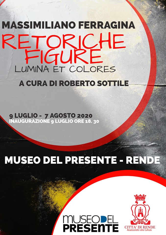 Un percorso articolato in sei sezioni: tele, carte e collage, archépitture, virus quotidiano e la sezione fotografica nata da una collaborazione con il fotografo Marco Tanfi, che ci fanno compagnia attraverso un dialogo che dalle ragioni dell'arte, arriva ad indagare le ragioni della vita. Dalla pittura come testimonianza, alla pittura testimone di un cambiamento. Uno studio profondamente contemporaneo quello di Massimiliano Ferragina fatto di ricerca sul colore, sui supporti e sulla loro interazione e convivenza, ma anche una ricerca che diventa un "Credo" dell'arte e della bellezza della vita, che prende forma nella forza di "Retoriche Figure", nell'istinto del colore e nel dialogo della luce.
