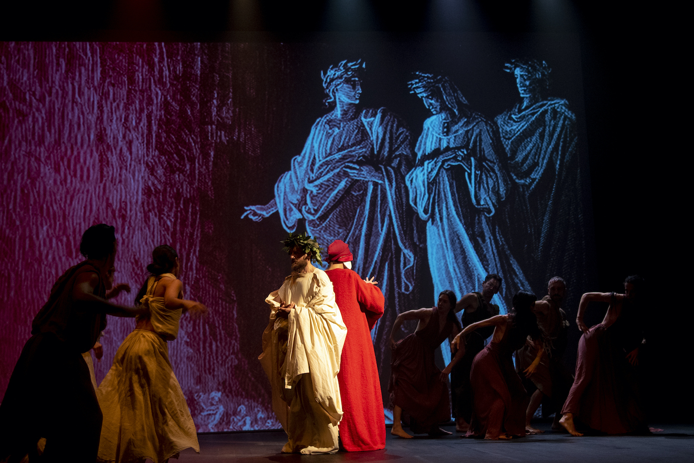 “Dante, per nostra fortuna” racconta la Divina Commedia in ventinove minuti attraverso la danza contemporanea e la metafora del teatro. Declinati con lo sguardo di un Dante bambino innamorato della lettura, i 21 canti più significativi - nove dell’Inferno, cinque del Purgatorio e sette del Paradiso - vengono interpretati dal movimento di danzatrici e danzatori in costume d’epoca, che eseguono le coreografie contemporanee di Michela Lucenti, accompagnati dalla danza classica di Maria Celeste Losa, solista del Teatro alla Scala, e dalle voci fuori campo di Massimiliano Finazzer Flory e di Angelica Cacciapaglia che recitano i versi danteschi ora in prosa, ora in versi.