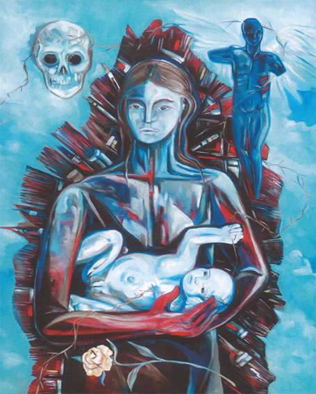 L’arte di Massimiliano Miazzo è contrassegnata da un segno forte di chiara matrice espressionista che si accompagna alla passione per i colori accesi accostati in modo originale nella creazione di immagini che si aprono a una lettura simbolica.