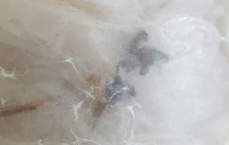 Applicando le “piccole scariche d’energia’ l’artista disegna con l’inchiostro sulla superficie irregolare del marmo – la superficie che dirige e crea la forma e l’intensità dei segni fatti dall’artista. In questo caso il supporto non è inteso come sussidiario, ma diventa il protagonista dell’opera.
