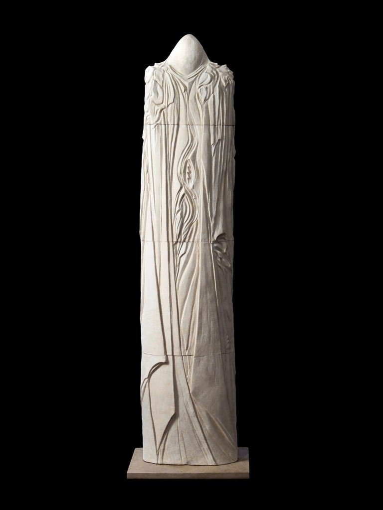 Nata negli anni Ottanta – scrive in catalogo Maria Selene Sconci curatrice della mostra – dalla ricerca sulla strutturazione della materia e scaturita da una riflessione sulla frammentazione e moltiplicazione dei piani prospettici, la ricerca ha portato l’artista a realizzare suggestivi frammenti architettonici intitolati Fratture che, in tempi non sospetti rappresentavano un originale omaggio alla città dell’Aquila, oggi il valore intrinseco di tali opere è aumentato considerevolmente, e mettere in mostra i rilievi che citano i magnifici rosoni delle maggiori chiese aquilane assume un toccante significato evocativo che emoziona gli animi oltre che il senso estetico di chi le osserva. Le eleganti ogive delle bifore di Casa di Jacopo Notar Nanni e di Palazzo Alfieri, le impalpabili trine dei rosoni marmorei di Santa Maria di Collemaggio, di San Silvestro, di San Pietro in Coppito, autentici simboli della città dell’Aquila, vengono rivisitati e reinseriti nel contesto linguistico dell’artista fino a diventare un personale, potente e originale metalinguaggio che oggi assume le caratteristiche universali e dirompenti di un pensiero doloroso urlato al mondo intero”. La mostra si apre con uno dei pezzi storici della produzione ormai trentennale di Massimina Pesce, “Babele” del 1988. Alta più di tre metri questa scultura in terracotta è il punto di partenza ineludibile per poter comprendere l’artista oggi, per comprendere tutta le serie dei Menhir, dei suoi Voli, dei suoi Angeli; per questo la mostra offre un percorso completo sulle sue ricerche estetiche più significative. Un percorso in cui alcune delle sue opere scultoree più recenti corrispondono in maniera letterale ai quadri dei voli o degli angeli senza che si possa veramente parlare di un’equivalenza tra pittura e scultura, ma piuttosto di una vera e arcana identità“Massimina Pesce – scrive in catalogo Claudio Strinati altro curatore della mostra – è un’allieva di Colla e di Leoncillo, è una persona che si è formata nella dialettica informale – astrazione. E’ una cittadina del mondo in quanto artista e intellettuale e non rivendica alcune peculiarità abruzzesi. I suoi Menhir sono emblemi universali che non hanno patria. La sua tecnica non è il frutto di una sopravvivenza di artigianato antico rimasto depositato nella città vecchia e rinato in un’ottica moderna. Il suo stesso concetto di modernità è maturato attraverso un parabola lenta e continua che ha attraversato i quattro fatali decenni della seconda metà del Novecento caricandosi sempre di più di significato e di capacità di elaborazione fino a raggiungere un sottile ed audace crinale tra pittura e scultura che è tutto suo e non ha alcuna matrice etnica o localistica. Eppure la nobiltà di pensiero di questa artista riflette veramente quelle istanze di eticità, di autocontrollo, di dominio sulle afflizioni del tempo e della sorte che si sono manifestate ultimamente davanti al mondo intero dopo i disastri del terremoto”.