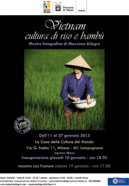 La Casa delle culture del mondo della Provincia di Milano ospita dall’11 al 27 gennaio 2013 la mostra fotografica “Vietnam, cultura di riso e bambù”, promossa dall’Assessorato alla Cultura della Provincia di Milano.