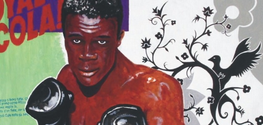 Una trentina di opere in acrilico e tecnica mista dove il colore vivace dei corpi dei pugili abbagliati dai riflettori lotta con l’elegante grafica dei loghi pubblicitari degli anni ‘60-’70