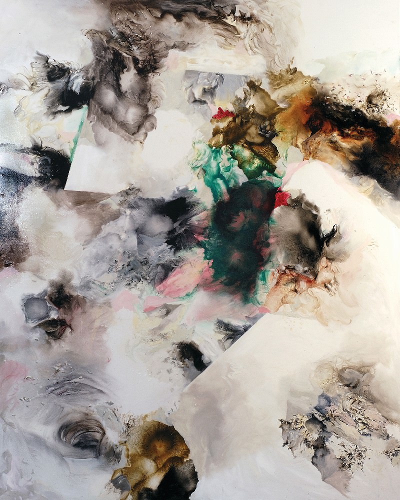 Angèi cerca un rapporto diretto e fisico con il palinsesto: a volte mescola e distende gli oli con le mani, altre volte dispensa i colori con un soffio per creare aloni e sfumature, altre ancora lavora a raffigurazioni precise che vanno a contaminare le sue composizioni astratte. Ne scaturiscono lavori estremamente dinamici dalle atmosfere intense e suggestive, che richiamano quelle turbolente e romantiche di William Turner, dove materia e consistenza cromatica risultano essere protagoniste. Opere potenti, energiche e vigorose, che ci privano di ogni punto di riferimento esplodendo con la forza dei loro colori. Un semplice soffio può contenere un intero universo di emozioni.