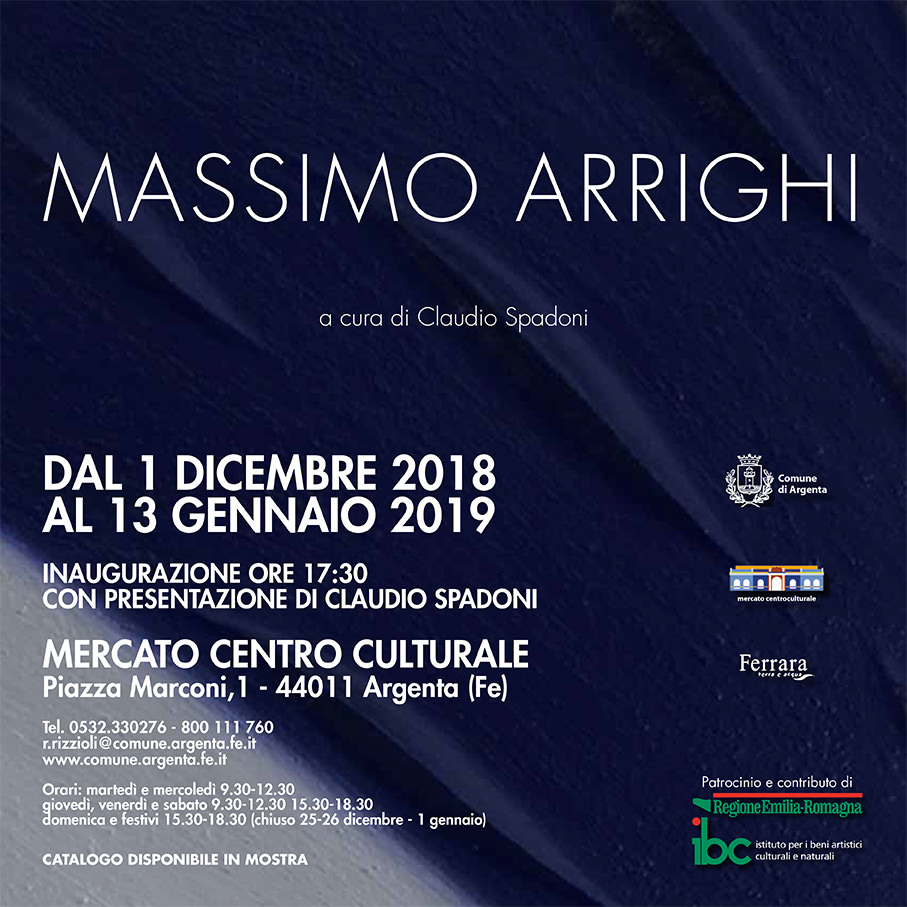 Dall'1 dicembre 2018 al 13 gennaio 2019 in esposizione le opere di “Massimo Arrighi” a cura di Claudio Spadoni e con il patrocinio e contributo dell'IBC della Regione Emilia Romagna, che ne ha curato direttamente il catalogo.