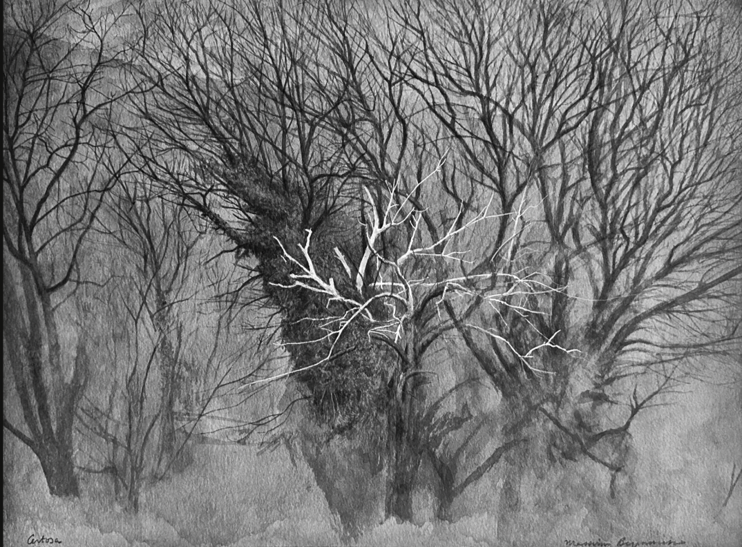 La mostra “Alberi” raccoglie alcuni esempi degli acquerelli che hanno come soggetto gli alberi, in particolare cipressi, ulivi e castagni, caratteristici del Piemonte e della Toscana, zone in cui vive l’autore, Massimo Bergamasco.