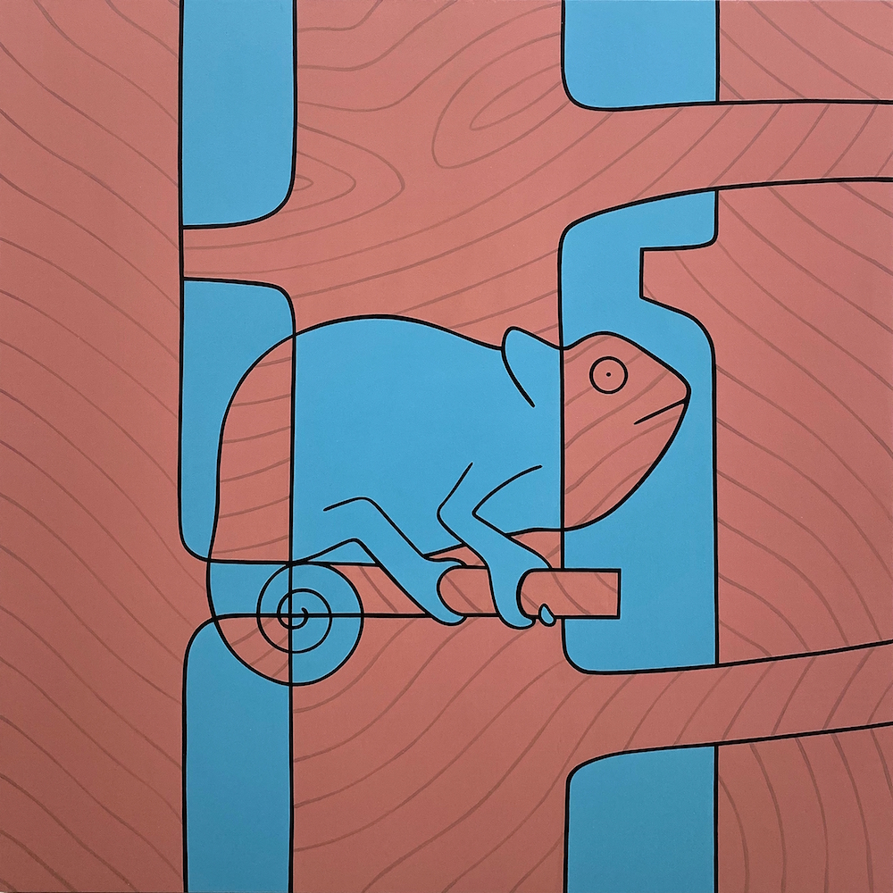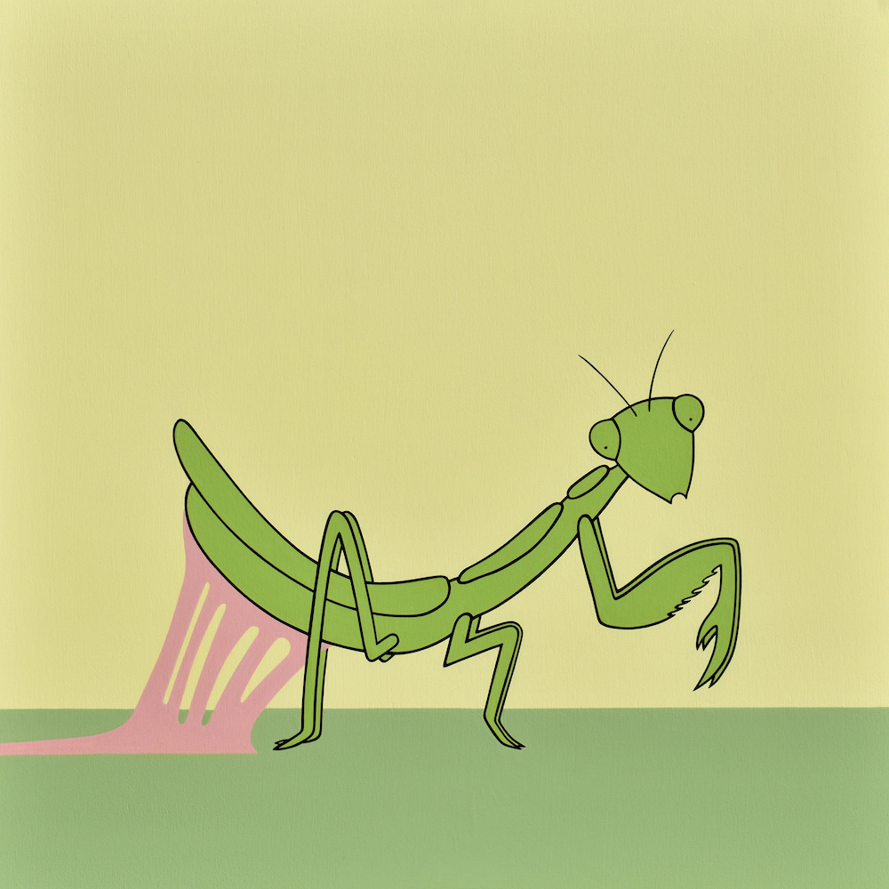 Il mondo animale e quello umano condividono uno stato di labile instabilità. Le scene proseguono oltre il taglio dell’inquadratura, lungo lo spessore della tavola; un escamotage che traduce l’impossibilità di comprendere interamente il senso dell’esistenza e la molteplicità delle dinamiche che la governano. Accostandole, le opere di Caccia acquisiscono nuovi significati, si animano intersecando le varie storie, come note su un pentagramma, scandite dalla ritmica cadenza del formato quadrato. Esse formano una sorta di casellario che riflette l’estemporaneo caos che domina il mondo e le nostre vite.