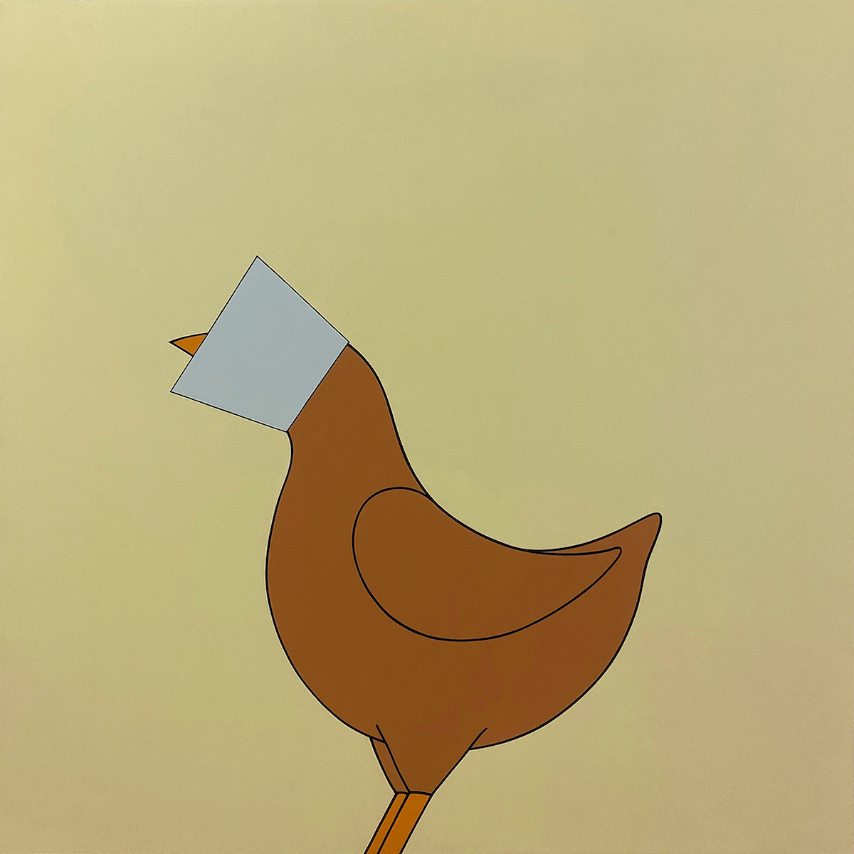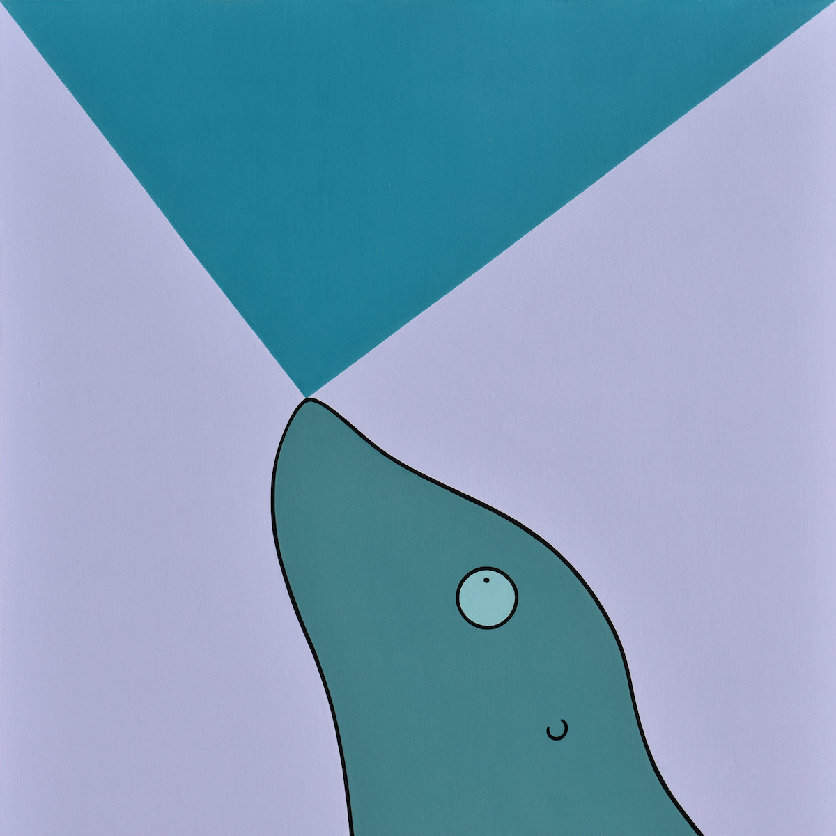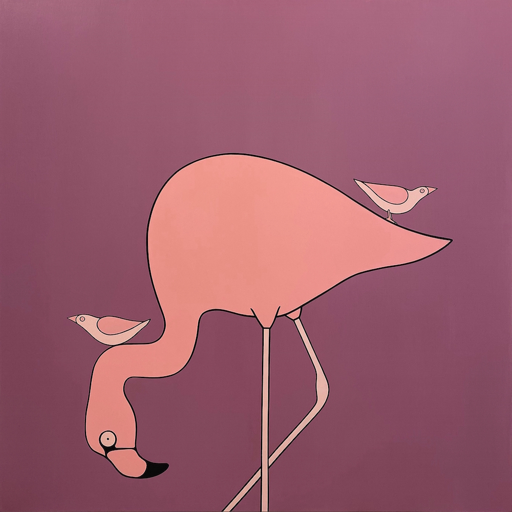 Se la colorazione è priva di ombre che conferiscano tridimensionalità e prospettiva a questi inaspettati accadimenti, numerose sono le sfumature di significato che possiamo attribuire a questi icastici fotogrammi, ai quali sfondi monocromatici conferiscono una connotazione surreale, un senso di sospensione nel tempo e nello spazio, come si può vedere dallo sguardo estatico e sorpreso delle creature dell’artista. Esso riflette la tensione esistenziale dell’uomo contemporaneo, costretto a svicolarsi tra le più assurde vicissitudini che la vita quotidianamente gli presenta e costantemente alla ricerca di un fragile equilibrio equilibrio spirituale; esso viene metaforicamente rappresentato dalle apparentemente statiche composizioni, bilanciate nel segno e nel colore, che nascondono una soffusa instabilità nell’evoluzione del frangente raffigurato. Queste circostanze trasmettono tutta la precarietà della vita e la contradditorietà della natura umana, divisa tra bene e male. La stessa duplice valenza può assumere il rapporto dell’uomo con il mondo animale, evidenziata da un oggetto o un dettaglio straniante che riconducono a questa difficile convivenza: la gallina è rimasta incastrata in un collare elisabettiano in plastica oppure è curativo come quello dei nostri animali domestici? Il polipo è invischiato in scie di petrolio o circondato dalle sue secrezioni nerastre?
