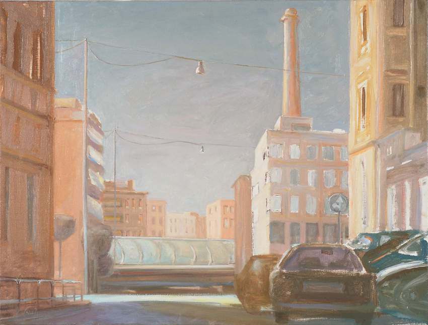 I dipinti di Massimo Campi hanno questa agilità di tratto, posano lo sguardo sui luoghi della città e ne rendono l’ordinarietà composta