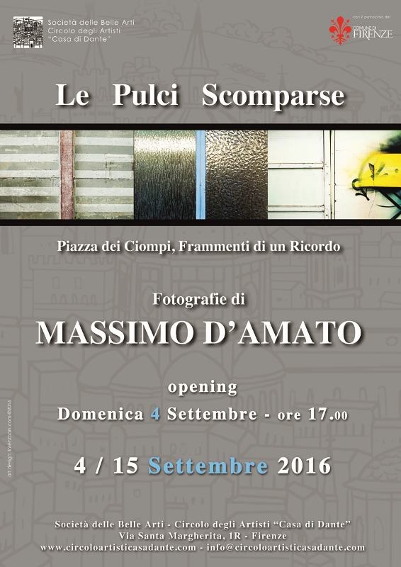 Domenica 4 Settembre 2016 presso le sale espositive della Società delle Belle Arti – Circolo degli Artisti “Casa di Dante” di Firenze, in via Santa Margherita 1R, si terrà l’inaugurazione della Mostra Fotografica di Massimo D’Amato.