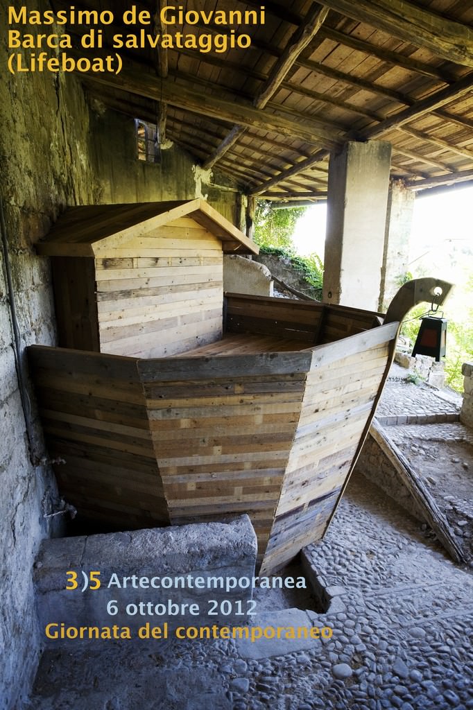 Dal 6 ottobre ,in occasione dell'ottava giornata del contemporaneo ,la 3)5 ArteContemporanea vi aspetta per un viaggio salvifico con l'installazione "Barca di Salvataggio"(lifeboat) di Massimo de Giovanni.