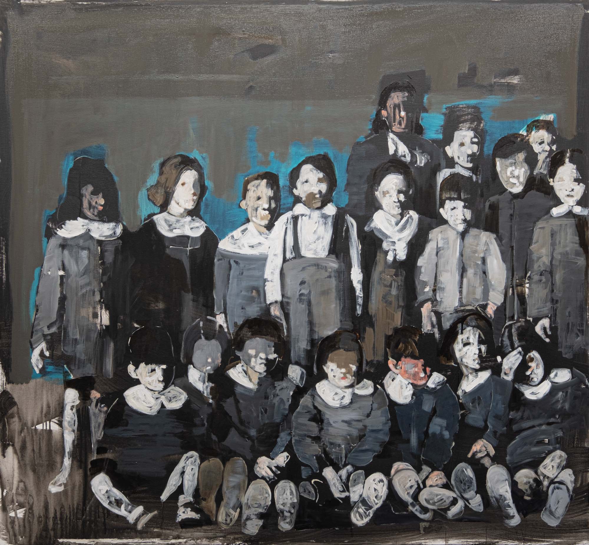 "Massimo Lagrotteria riprende con la pittura ad olio la tradizione artistica ma l'impronta che ne esce è totalmente al passo coi tempi, pregna di quel senso di caducità e finitezza che fa parte della nostra contingenza. Le opere in mostra, una selezione degli ultimi tre anni di lavoro, sono tutte interamente incentrate sulla figura umana, vista da diverse prospettive e con un occhio decisivo alla trasposizione fotografica." (Francesca Baboni)