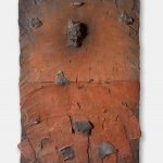 Il titolo, Depositi piovani, si riferisce alle pozze d’acqua dei terreni ricchi di ossidi ferrici in cui l’artista attinge la preziosa ocra rossa, indispensabile per gli antichi processi di lavorazione della terracotta.