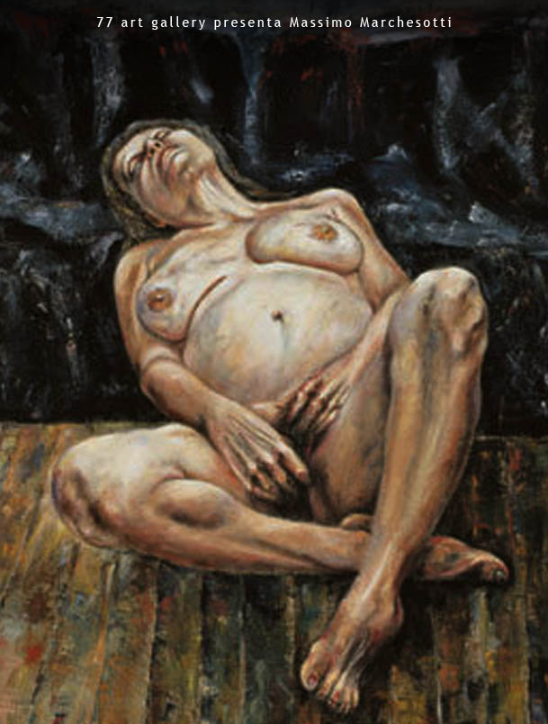 Massimo Marchesotti nasce a Milano nel 1935. Il suo primo approccio alla creatività e' di tipo musicale, studiando presso il Conservatorio G. Verdi e dedicandosi da questo momento in poi allo studio del pianoforte ed in seguito alla direzione di un coro. Fin dalla fanciullezza questa passione viene accostata però ad un'altra altrettanto forte e significativa: quella per la pittura. La tematica da sempre prediletta nelle sue opere è quella erotica, trattata con marcato accento di provocazione, corporeità cruda e mancanza di realismo. Marchesotti intende esercitare un'indagine sull'uomo, sulla sua figura fisica ed emotiva, ritraendo non solo il corpo nudo e la sua anatomia senza censura, ma anche cogliendo gli aspetti di dolore, solitudine, sentimento che l'essere racchiude in sé, e lascia trasparire da un semplice sguardo o da un movimento. L'interesse quasi morboso per la carne, i suoi colori ed i dettagli lo portano ad utilizzare una tecnica pittorica violenta, dal cromatismo acceso ed invadente, dalle pennellate consistenti ed ampie, spesso deformando e trasfigurando ciò che viene rappresentato. I corpi solidi e robusti si lanciano verso lo spettatore, rompendo la rigidità della tela e dello spazio in cui sono costretti ed avvicinandosi vertiginosamente a chi guarda. Le posizioni aggrovigliate, contorte e scomposte ricordano gli schizzi di Schiele, così come le figure logorate di Kokoshka e Munch o il grottesco di Grosz, che deturpa la normale espressività creando delle maschere talvolta inquietanti. Molti definiscono l’artista espressionista, ma Marchesotti stesso indica che è semplicemente la tecnica pittorica di quella corrente la più congeniale per esprimere i suoi contenuti, la più efficace.