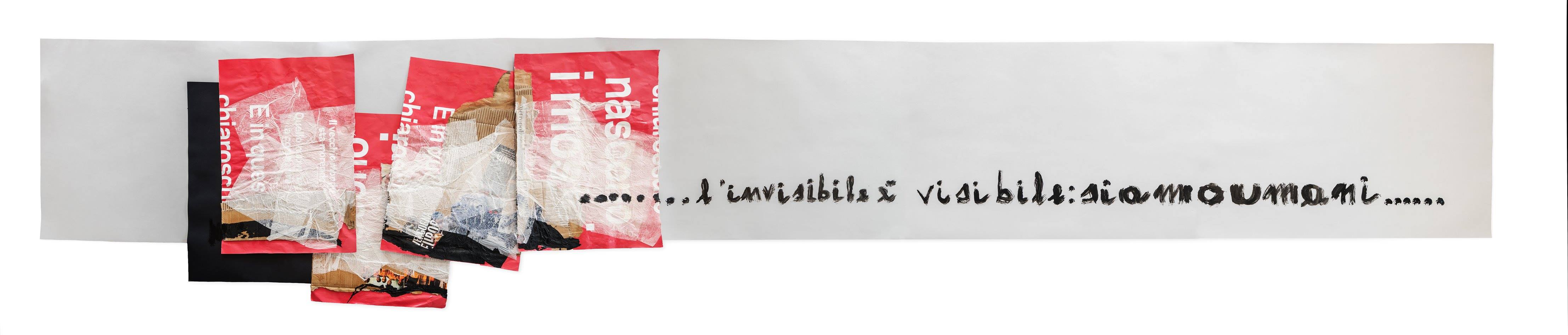 L’invisibile è visibile, 2019 collage carta &carta su carta 0.70x5.00 installazione Massimo Palumbo
