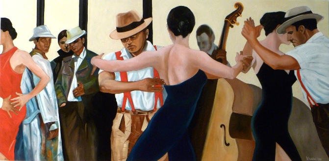Il tema del “tango”, così ricco di stimoli creativi, accompagna il suo lavoro da oltre un decennio ed ha segnato senza dubbio gran parte della sua produzione, questo ha fatto sì che l’autore venisse soprannominato” Il pittore del tango.